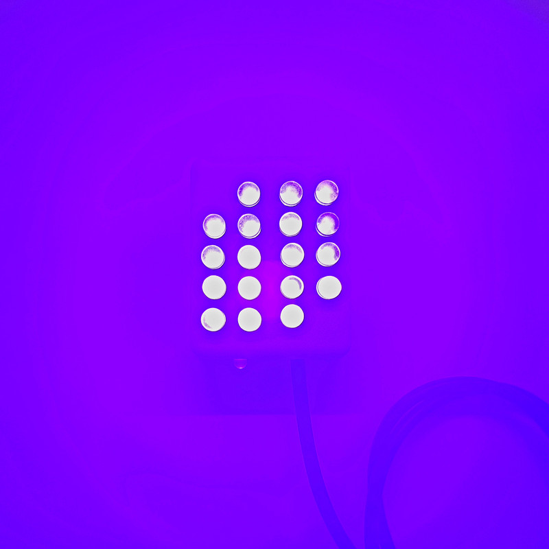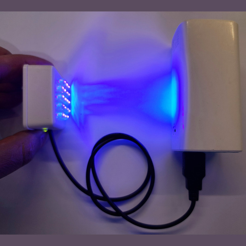 چراغ UV (فرابنفش) با فرکانس 380 الی 395 نانومتر می باشد که میتوان جهت تغذیه آن از برق OTG موبایل ها ، شارژر موبایل یا پاوربانک استفاده نمود . این نور آبی مایل به بنفش در تمامی 18 لامپ نوری کالا به یک میزان نور نخواهند بود و متغیر است زیرا فرکانس های دیود های نوری متفاوت اند. از این کالا میتوان برای مصارفی همچون چک کردن اصالت پول ، خشک کردن رنگ و رزین های UV ، خشک کردن لاک و ... استفاده نمود .