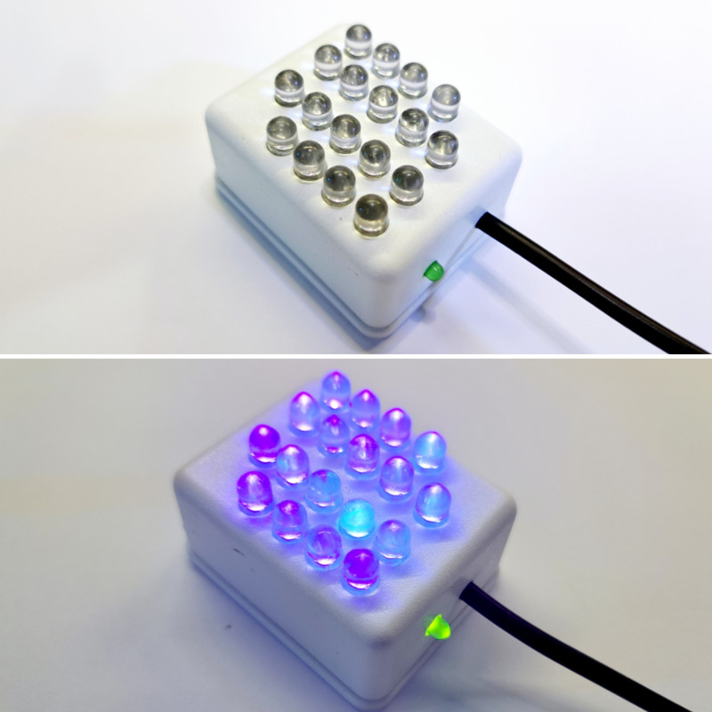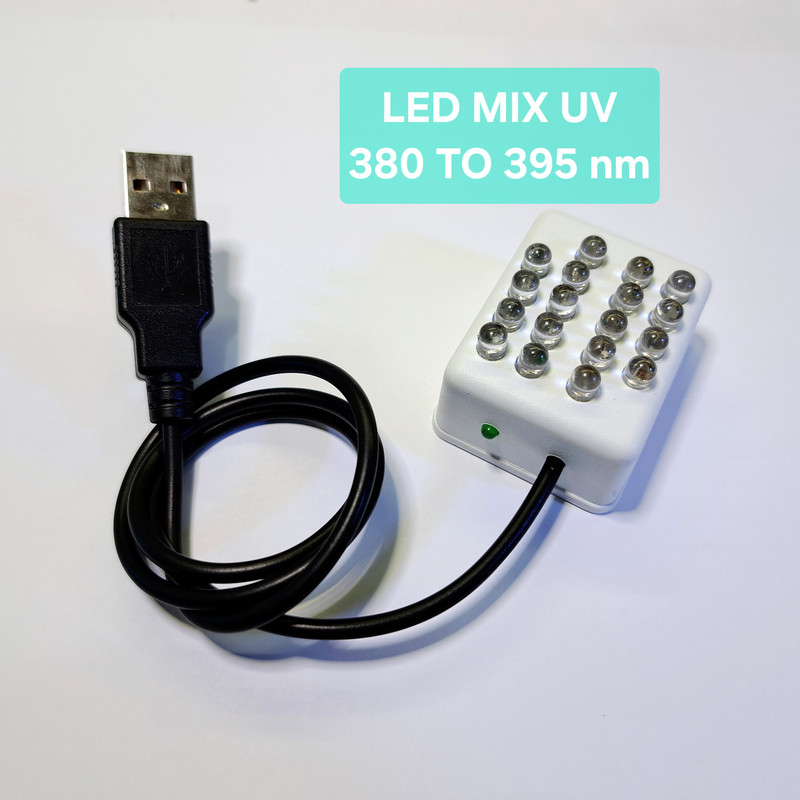 چراغ UV (فرابنفش) با فرکانس 380 الی 395 نانومتر می باشد که میتوان جهت تغذیه آن از برق OTG موبایل ها ، شارژر موبایل یا پاوربانک استفاده نمود . این نور آبی مایل به بنفش در تمامی 18 لامپ نوری کالا به یک میزان نور نخواهند بود و متغیر است زیرا فرکانس های دیود های نوری متفاوت اند. از این کالا میتوان برای مصارفی همچون چک کردن اصالت پول ، خشک کردن رنگ و رزین های UV ، خشک کردن لاک و ... استفاده نمود .