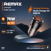 شارژر فندکی 75 وات دو پورت ریمکس مدل RCC 360