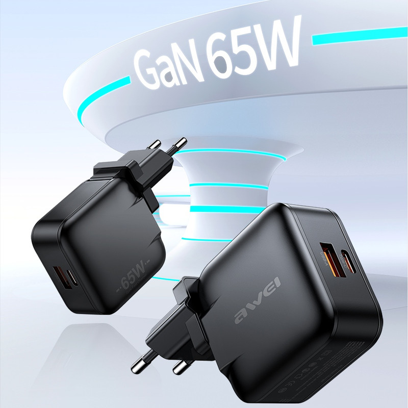 آداپتور شارژ سریع AWEI مدل PD55-EU دارای 2 پورت، یکی Type C و دیگری USB است که از پروتکل PD و QC و… نیز پشتیبانی میکند. همچنین اوی در طراحی این شارژر بر روی ابعاد شارژر جهت استفاده راحتتر هم مانور داده است. این شارژر دارای پین تبدیل دوشاخ امریکایی به دوشاخ معمولی میباشد و از هر دوی این حالت ها بستگی به شرایط میتوانید استفاده کنید . خروجی تایپ C این شارژر دارای توان حداکثر 65 وات و خروجی USB Type A آن دارای توان حداکثر 27 وات میباشد . همچنین اگر همزمان از دو پورت خروجی آن استفاده کنید تواین خروجی تایپ سی 45 وات و خروجی Type A ده وات خواهد بود.