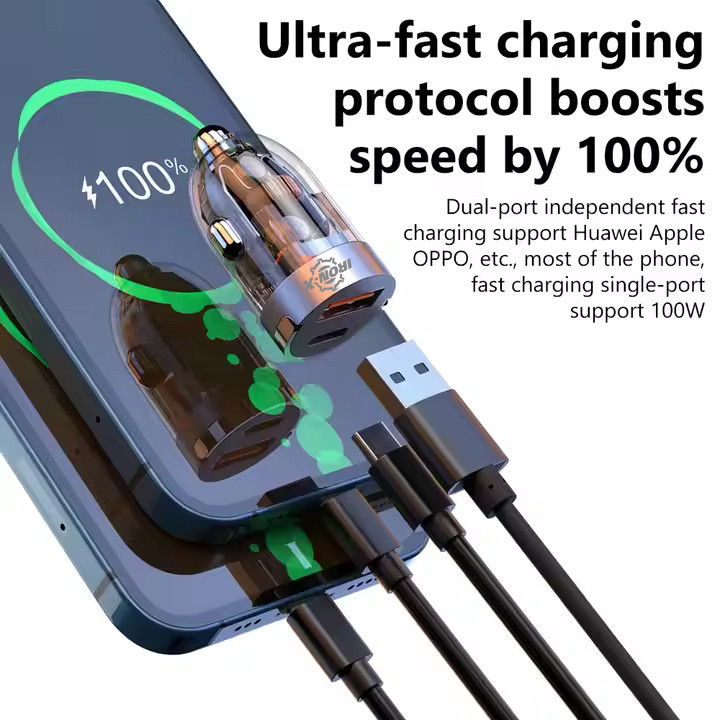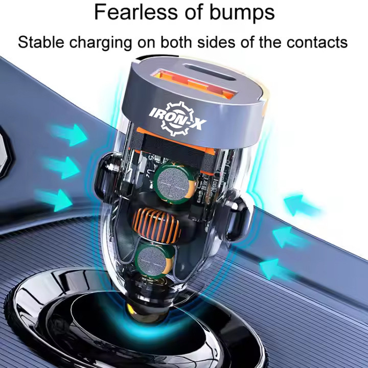 شارژر فندکی ۶۰ وات آیرون ایکس مدل SUPERFAST360 یک محصول کارآمد برای شارژ سریع و ایمن دستگاههای موبایل و تبلت در خودرو است. این شارژر با وزن تنها ۲۰ گرم و بدنهای از جنس پلاستیک مقاوم طراحی شده و به راحتی در فندک خودرو نصب میشود. سبک بودن و ابعاد جمعوجور آن حمل و استفاده در سفر را بسیار ساده کرده است. مدل SUPERFAST360 دارای دو درگاه خروجی شامل USB-A و USB Type-C است که توان خروجی کل آن به ۶۰ وات میرسد و در بازه ۵۱ تا ۶۰ وات قرار دارد. شدت جریان خروجی هر دو درگاه ۳ آمپر است و این امکان را فراهم میکند تا دستگاهها با حداکثر سرعت ممکن شارژ شوند. بهرهگیری از تکنولوژیهای USB PD ۳.۰ و Quick Charge ۳.۰ تضمین میکند که فرآیند شارژ سریع و ایمن انجام شود و باتری دستگاهها تحت هیچ شرایطی آسیب نبیند. یکی از ویژگیهای برجسته این شارژر، استفاده از تکنولوژی Fast Charge است که جریان و ولتاژ مناسب هر دستگاه را تشخیص میدهد و شارژ بهینه را فراهم میکند. این قابلیت به ویژه هنگام سفرهای طولانی، وقتی که چند دستگاه باید سریع شارژ شوند، بسیار کاربردی است. شارژر فندکی SUPERFAST360 با انواع گوشیهای موبایل و تبلت سازگار است و میتواند گزینهای ایدهآل برای کسانی باشد که به دنبال شارژ سریع و ایمن در خودرو هستند. طراحی جمعوجور، وزن سبک، توان بالا و پشتیبانی از فناوریهای شارژ سریع این محصول را به یک همراه مطمئن در سفرهای شهری و جادهای تبدیل کرده است. به طور کلی، شارژر فندکی آیرون ایکس SUPERFAST360 ترکیبی از سرعت شارژ بالا، ایمنی، دوام مناسب و سهولت حمل را ارائه میدهد و برای استفاده روزمره در خودرو، چه برای گوشیهای هوشمند و چه تبلتها، گزینهای مطمئن و کارآمد است.
