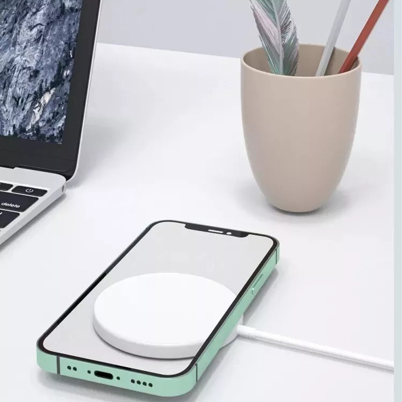 با استفاده از شارژر بی سیم میتوان گوشی یا تبلت خود را به آسانی و سرعت بیشتری شارژ کرد. برند اپل جزو محبوبترین برندهای جهان است و استفاده از محصولات و گوشیهای اپل امروزه بسیار متداول است. استفاده از اکسسوریهای اپل با توجه به طراحی زیبا و کیفیت بالا مورد توجه بسیاری از کاربران و طرفداران این برند است. شارژر بی سیم اپل مدل MagSafe محصولی با کیفیت و طراحی زیبا از این برند است. با استفاده از این محصول میتوان گوشی یا تبلت اپل را با سرعت بالاتری شارژ کرد. به همراه این شارژر بیسیم یک کابل USB-C جهت وصل شدن آن به سری شارژر ارائه میشود. MagSafe به گونهای طراحی شده که با اتصال آن به سری شارژر گوشی خود دقیقا همان ولتاژ و آمپر خروجی سری شارژر را به گوشی شما میرساند. این محصول حدودا 82 گرم وزن دارد که با گوشیهای آیفون 8 به بالا سازگار است.