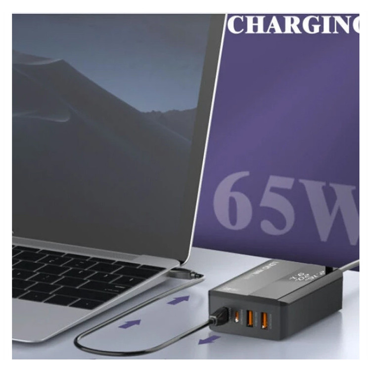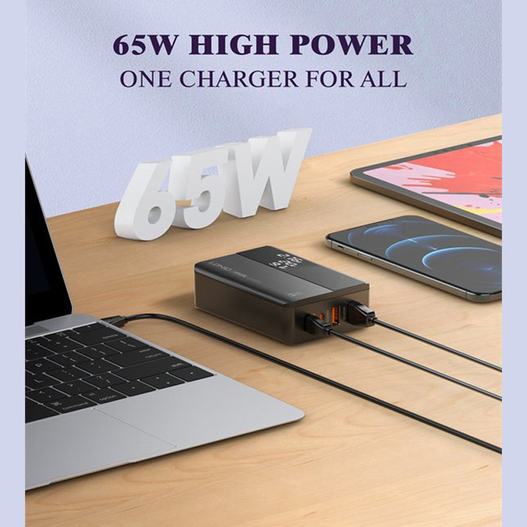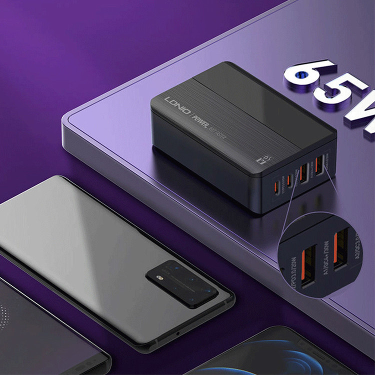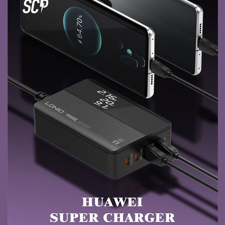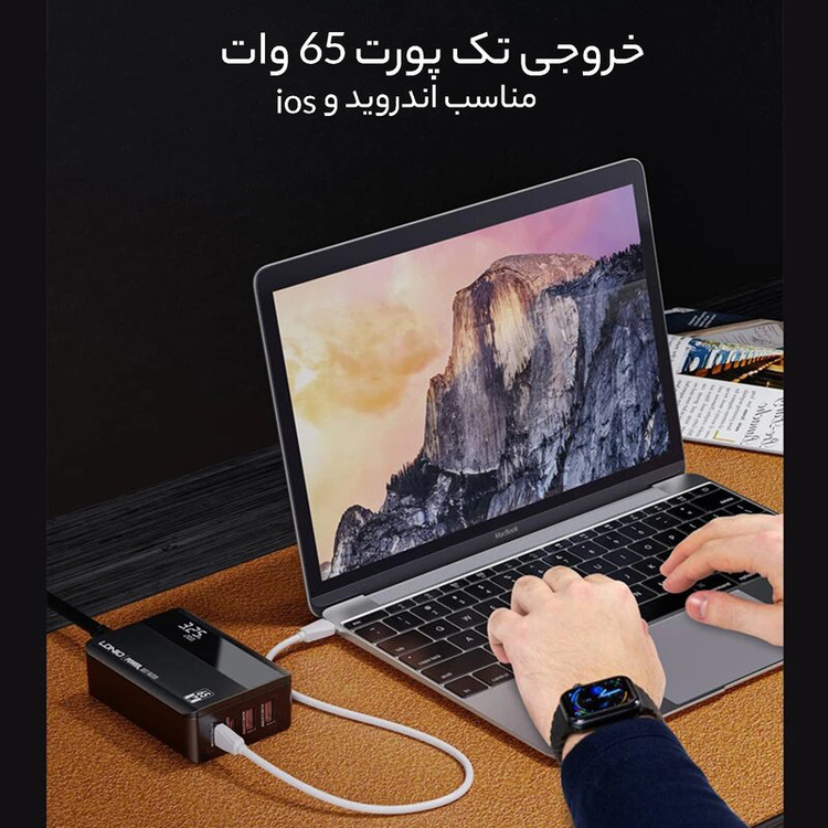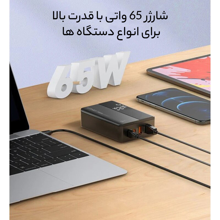 ما در طول روز با کابلهای متفاوتی سر و کار داریم که از نظر تعداد نیز فراواناند. بعضی اوقات برای استفاده از آنها پورت کافی نداریم و دچار مشکل میشویم. اینجاست که داشتن یک شارژر دارای چندین پورت به کمک ما می آید. شارژر رومیزی الدینیو مدل A4808Q PD65W که به تازگی توسط کمپانی الدینیو وارد بازار شده است در این زمینه بسیار کارآمد است. این شارژر با حداکثر توان خروجی 65 وات و داشتن 4 پورت خروجی متشکل از 2 عدد USB و 2 عدد Type C می تواند انتخاب خوبی برای میز کار شما باشد. این شارژر به شکل رومیزی طراحی شده و به عنوان هاب شارژر مورد استفاده قرار می گیرد. این شارژر از مواد pc نسوز ساخته شده و روی بدنه آن یک صفحه نمایش دیجیتالی قرار دارد و میزان ولتاژ و شدت جریان را نمایش می دهد. این محصول همچنین دارای وزن و ابعاد مناسبی است. مشخصات خروجی های این شارژر به شرح زیر است: USB-C1 , USB-C2 output : 5V/3A, 9V/3A, 15V/3A, 20V/3.25A, 65W (max.) USB-A1 |USB-A2 output : 4.5V/5A, 5V/4.5A, 9V/3A, 12V/2.5A, 15V/2A, 20V/1.5A, 30W (max) Total output power : 65W (max.) از مزیت های مهم این شارژر میتوان به توانایی شارژ لپتاپ اشاره کرد. درواقع به واسطه ی پورت تایپ سی ,و توان 65 واتی ، میتوان شارژ لپ تاپ ، تلفن همراه و تبلت را انجام داد.