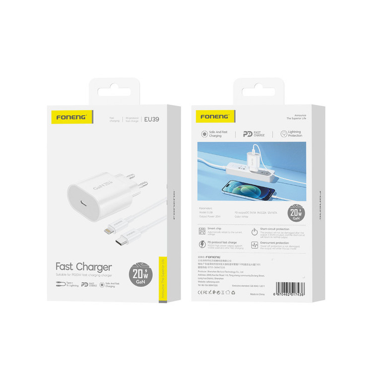 شارژر دیواری 20 وات فوننگ مدل IPHONE 13 EU به همراه کابل لایتنینگ