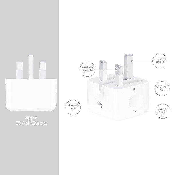 توان خروجی در این مدل از شارژرهای دیواری 20 وات است. همچنین جریان خروجی در آن 3.0 آمپر شدت دارد و برای شارژ باتری انواع گوشیهای موبایل، دوربین دیجیتال و دیگر لوازم از این قبیل مناسب خواهد بود. در این شارژر دیواری یک سه شاخه برق قرار گرفته که از آن برای اتصال شارژر به پریز برق استفاده میشود. البته توجه داشته باشید که این سه شاخه با پریز برق در ایران سازگاری ندارد و شما برای استفاده از آن باید از یک تبدیل 3 به 2 استفاده کنید. پس از استفاده از این تبدیل، شما میتوانید شارژر را بهطور مستقیم به پریز برق متصل کرده و دستگاه مورد نظر خود را با کمک یک کابل USB به آن متصل کنید. ولتاژ ورودی در این شارژر 220 تا 240 ولت و ولتاژ خروجی در آن 20 ولت است. وزن این شارژر 80 گرم بوده و ابعاد آن بهصورتی طراحی شده که بهسادگی قابل حمل باشد.