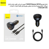 شارژر فندکی باسئوس مدل CCZX-160CO 160W به همراه کابل تبدیل Usb-c