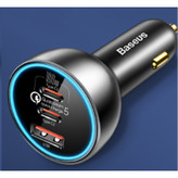 شارژر فندکی 3 پورت Baseus TZCCZM-0G Qualcomm 5 Fast Car Charger 160W : شارژ خالی کردن گوشی یکی از معضلات مسافرتهای جادهایست که معمولا با شارژر فندکی ماشین حل میشود. به همین دلیل خرید شارژری که دارای پورت های مناسب باشد کاملا لازم و ضروریست. شارژر فندکی ماشین بیسوس Baseus QC5.0 Dual Type C USB Car Charger دارای دو پورت فست شارژ تایپ سی و یک پورت فست یو اس بی است که از استانداردهای کوالکام بهره میبرند. توان خروجی کلی این شارژر 160 وات است و در صورت استفاده از یک پورت میتوانید تا 100 وات توان بگیرید. همراه این شارژر یک کابل 1 متری دو سر تایپ سی 100 واتی هم ارائه میشود که مدل Baseus Xiaobai بوده و میتوانید برای شارژ لپ تاپ از آن استفاده کنید. دارای 3 خروجی با توان بالا : همانطور که گفتیم روی بدنه شارژ فندکی Baseus TZCCZM-0G دو پورت Type C و یک پورت USB قرار دارد که میتوانید به طور همزمان از یکی برای شارژ لپ تاپ و از دیگری برای شارژ گوشی استفاده کنید. ورودی فندکی هم که به درگاه فندک ماشین وصل میشود و تقریبا با تمام ماشینهای 12-24V سازگاری خواهد داشت. در ادامه ولتاژ و جریان هر کدام از پورت ها و تکنولوژیهای فست شارژ به کار رفته در این دستگاه را نام میبریم: خروجی تایپ سی 1: 5V/3A | 9V/3A | 12V/3A | 15V/3A | 20V/5A - توان 100 وات خروجی تایپ سی 2: 5V/3A | 9V/2.22A | 12V/2.5A | 15V/2A | 20V/1.5A - توان 30 وات خروجی یو اس بی: 5V/3A | 9V/2A | 10V/2A | 12V/2.5A - توان 30 وات همه پورت ها با هم: 100 + 30 + 30 وات لازم به ذکر است که برای گرفتن خروجی 100 وات از پورت تایپ سی 1 بهتر است با همان کابل تایپ سی 100 وات که همراه محصول ارائه میشود لپ تاپ را شارژ کنید. به کمک این پورت شما میتوانید مک بوک پرو را در عرض 153 دقیقه کامل شارژ کنید. تکنولوژیهای فست شارژ : QC 5.0. شارژر ماشین بیسوس Baseus TZCCZM از استاندارد شارژ سریع کوالکام 5 با سه خروجی برخوردار شده است. این استاندارد نسب به نسل قبلی خود 70 درصد بهبود داشته و با همه نسخه های قدیمی هم سازگار است.