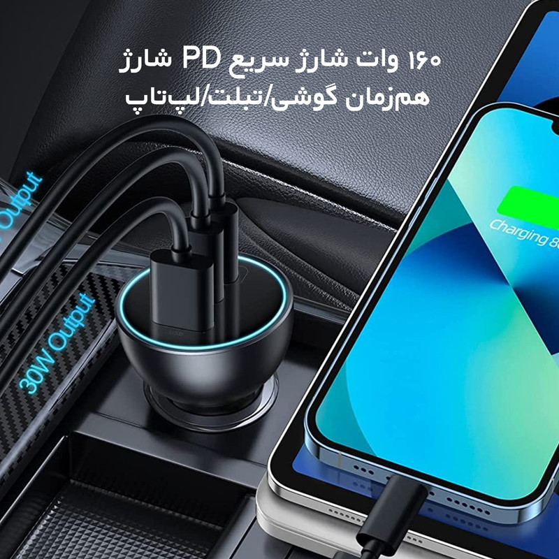 شارژر فندکی باسئوس مدل CCZX-160CO 160W به همراه کابل تبدیل Usb-c