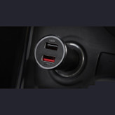 شارژر فندکی شیائومی Xiaomi CC06ZM 37W QC3 Car Charger با توان 37 وات مناسب اکثر گوشی هایی است که در حال حاضر در بازار موجود است. شارژر فندکی شیائومی دارای ابعادی معادل 30 × 30 × 74 میلی متر است که جزو شارژر فندکی های کوچک محسوب می شود. این شارژر فندکی با بدنه ای از جنس آلومینوم ظاهری زیبا داشته. یک چراغ LED نیز در قسمت بالایی قرار گرفته است که نشان دهنده وضعیت شارژ می باشد. در همین قسمت دایره ای دو پورت USB قرار گرفته است که یکی به رنگ مشکی و دیگری به رنگ نارنجی طراحی شده است. البته این طراحی دلیل داشته و صرفا جهت زیبایی نبوده است که در ادامه توضیحات بیشتری خواهیم داد. شارژر فندکی Xiaomi CC06ZM 37W QC3 Car Charger دارای دو پورت یو اس بی می باشد. این پورت ها یکی 2 آمپر بوده که با رنگ مشکی طراحی شده است. پورت دیگر این شارژر فندکی نیز به رنگ نارنجی طراحی شده که نشان دهنده شارژ سریع است. شارژ سریع این شارژر فندکی از فناوری Qualcomm Quick Charge 3.0 پشتیبانی می کند که می واند گوشی هایی که از این قابلیت پشتیبانی می کنند را با سرعت بالا شارژ کند. همچنین یکی از اصلی ترین قابلیت های این شارژر فندکی دارا بودن قابلیت شارژ با توان 37 وات است. این قابلیت برای گوشی های جدید شیائومی، سامسونگ، اپل و... که از فناوری کوالکام استفاده نمی کنند و شارژ سریع با توان بالا دارند کارآمد است.