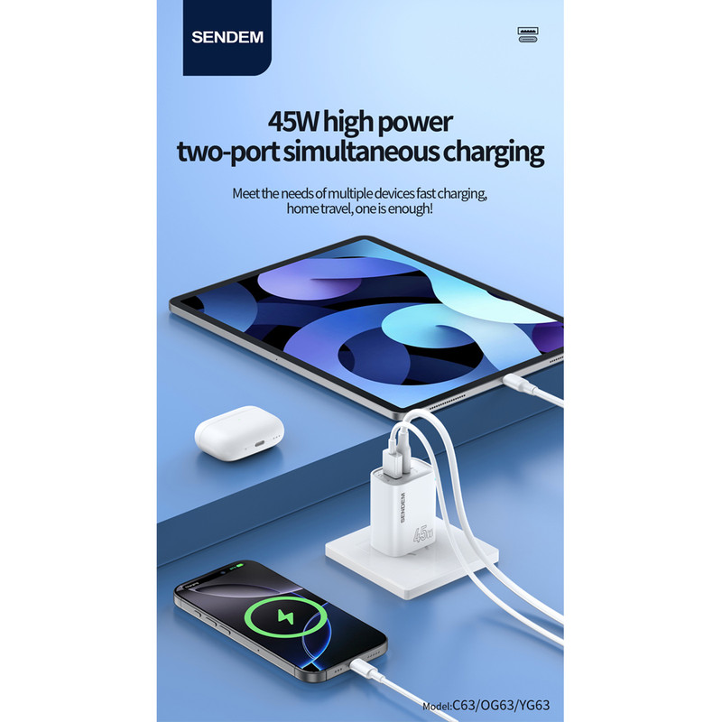 شارژر دیواری 45 وات سندم مدل OG63 به همراه کابل تبدیل USB-C