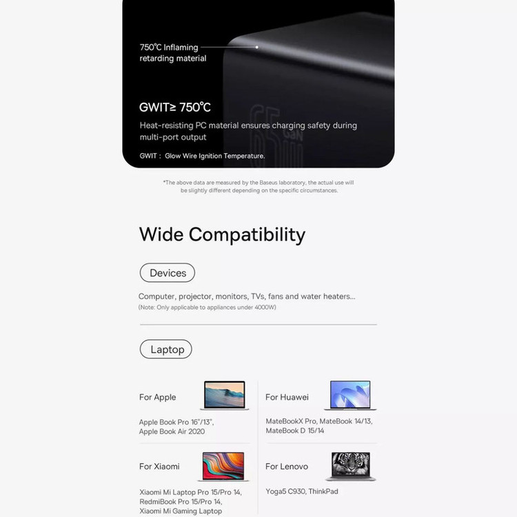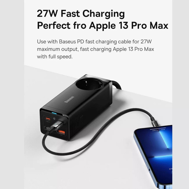 استفاده همزمان از چند وسیله برقی نیاز به خرید چندراهی برق که از کیفیت بالایی برخوردار باشد و در عین باکیفیت بودن ایمنی را هم تضمین کند بسیار اهمیت پیدا میکند. در این راستا بیسوس سنتر شارژر رومیزی از برند بیسوس با عنوان Baseus extension cord socket with 65W 5-port power adapter CCGAN65-1ACE BS-PSZM000901 را به لیست محصولاتش اضافه کرده که با داشتن یک سوکت برق و دو پورت تایپ سی و یک یو اس بی امکان اتصال چند دستگاه به صورت همزمان برایتان فراهم خواهد بود. شارژر رومیزی بیسوس از پلی کربنات نسوز و مواد مقاوم در برابر شعله UL94V-0 که تا دمای 750 درجه سانتیگراد مقاوم هستند ساخته شده؛ به لطف این مواد بدنهای فوقالعاده مقاوم در برابر آسیب و حرارت بالا دارد. ابعادی جمعوجور به اندازه 18.1x10.6x5.6 سانتی متر دارد و فضای بسیار کمی را اشغال میکند. چراغ نشانگر آبی رنگ هم نشانی از کارکرد صحیح آن و جریان یافتن برق است. وزن آن در حدود 443 گرم است که برای حمل کردن راحت میباشد. دو شاخه چند راهی بیسوس از نوع EU میباشد که برای استفاده از آن در ایران نیازمند تبدیل نیست. کابلی به طول 1.5 متر دارد و با کمک آن به راحتی میتوانید مشکل دور بودن از پریز برق را حل کنید. برای چند راهی برند بیسوس درب های محافظ تعبیه شده است تا از ورود اجسام تیز یا انگشت دست کودکان جلوگیری کند و آنها را از خطر برق گرفتگی در امان نگه دارد. در طراحی این چند راهی بیسوس از فناوری گالیوم نیترید استفاده شده که یک ماده نیمه هادی جدید است که هم قابلیت رسانایی انتقال نیرو بالا مثل مس را دارد و هم میتواند یک عایق حرارتی و انرژی مانند شیشه باشد و در برابر اتصال کوتاه، بار اضافی، جریان و ولتاژ اضافی مقاوم است. به دلیل اینکه نیاز به عایق دوباره برای چندراهی نیست.