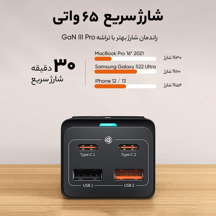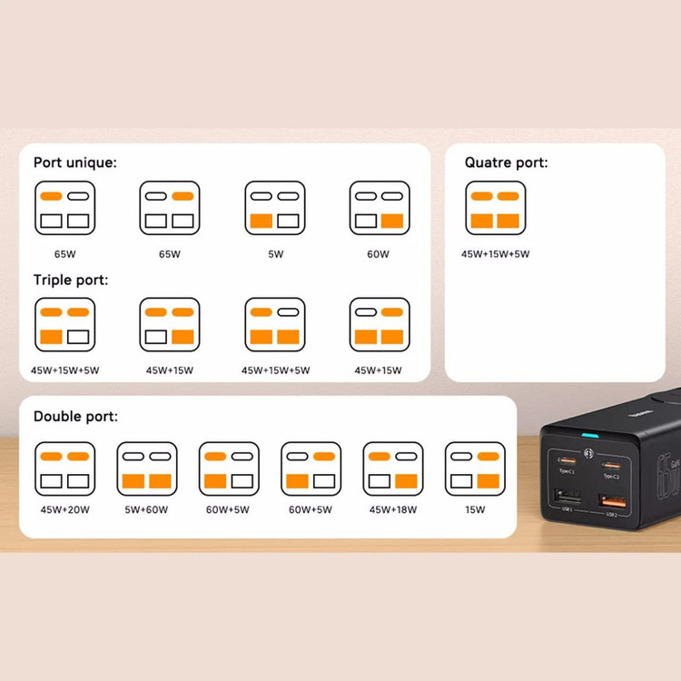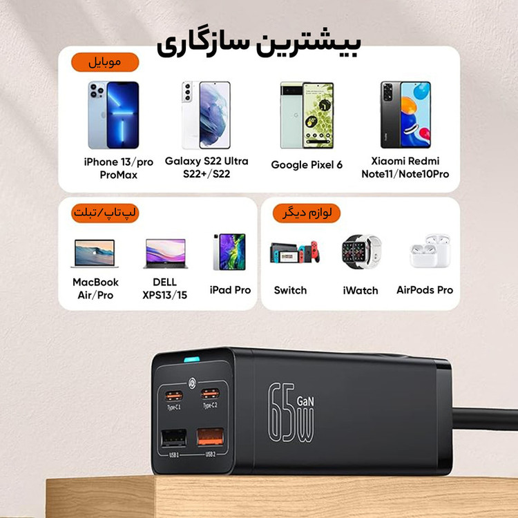 شارژر رومیزی 65 وات بیسوس مدل PSZM000901