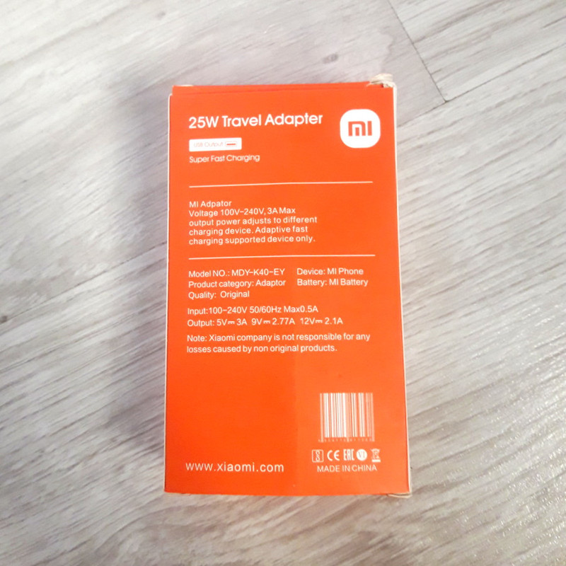 شارژر شیائومی MDY_K40_EY با قابلیت سوپر فست شارژ 25 وات مناسب انواع گوشی های شیائومی و همچنین تبلت ها است.شارژ سریع موبایل از مزیت های این مدل شارژر دیواری شیائومی می باشد.به همراه این شارژر شیائومی یک عدد کابل سوپر فست شارژ تایپ سی به طول 100cm می باشد.از آنجا که این شارژر سوپر فست شارژ است در هر دقیقه یک درصد به شارژ گوشی شما اضاف می شود.این مدل شارژر دیواری شیائومی در یک پک نارنجی رنگ قرار دارد و تحویل خواهد شد