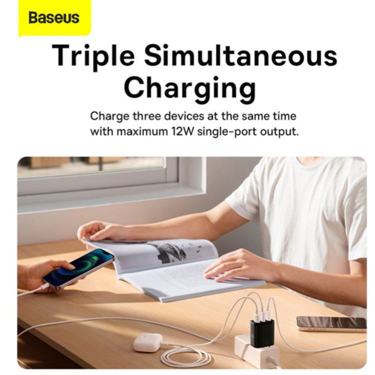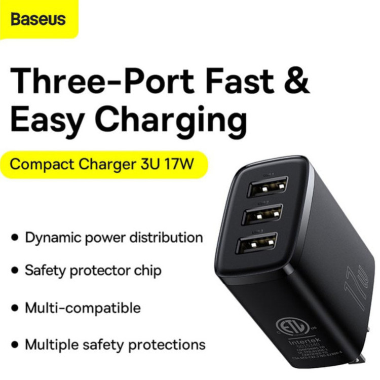 شارژر دیواری 17 وات سه پورت بیسوس مدل Compact 3U 17W CN