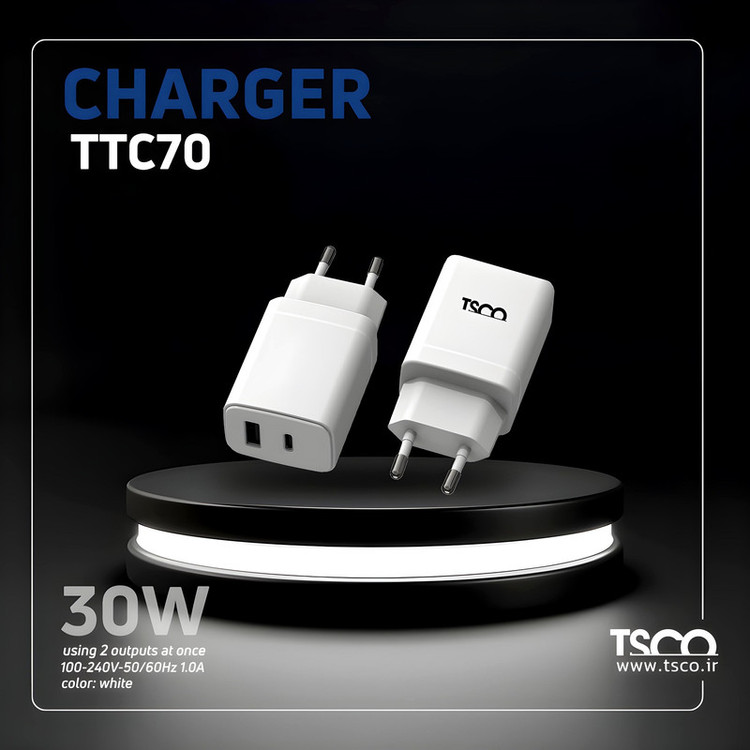 شارژر دیواری ۳۰ وات تسکو مدل TTC 70