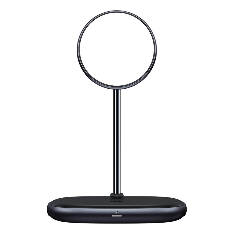Swan 2-in-1 Wireless Magnetic Charging Bracket یک شارژر بیسیم و پایه نگهدارنده مگنتی از کمپانی بیسوس است که میتواند اکثر گوشیهای هوشمند سازگار با فناوری شارژ بیسیم را تغذیه نماید. حداکثر توان خروجی این دستگاه 20 وات میباشد. قسمت پایه به شکل پهن بوده و ساختار پد آن به صورتی است که با انواع گوشیهای سازگار با فناوری شارژ بیسیم Qi کار خواهد کرد. فقط کافی است که قسمت بالای آیفون را به پد نگهدارنده بچسبانید تا گوشی شما شروع به شارژ شدن نماید. پد نگهدارنده نیز قادر است علاوه بر نگهداشتن گوشی، دو مدل محبوب از گوشی های هوشمند اپل یعنی iPhone 12 و iPhone 13 را شارژ نماید. بدنه این استند از پلاستیک، استیل ضد زنگ و سیلیکون بوده و در قسمت نگهدارنده نیز یک آهنربا وجود دارد. وزن آن حدود 270 گرم و در ابعاد 106.5 × 106.5 × 158.2 میلیمتر طراحی شده است و به راحتی قابل حمل و جابجایی است. نشانگر LED که در جلوی دستگاه وجود دارد، وضعیت اتصال درست کابل USB و دریافت برق دستگاه را به شما اطلاع میدهد. درگاه ورودی این دستگاه USB-C بوده که با یک عدد کابل USB قابل اتصال به برق است. هر کدام از پد های شارژ بیسیم از توان مصرفی 10 وات بهره برده اند که در مجموع توان دستگاه را به 20 وات میرساند. ولتاژ و جریان ورودی Swan 2-in-1 Wireless Magnetic Charging Bracket برابر است با 9V-2A و 12V-2A. لازم به ذکر است شارژر بیسیم از تکنولوژی فست شارژ برای شارژ دستگاه ها استفاده میکند. همراه این محصول یک آداپتور فست شارژ و یک سیم 1 متری Type-c در بستهبندی قرار گرفته است.