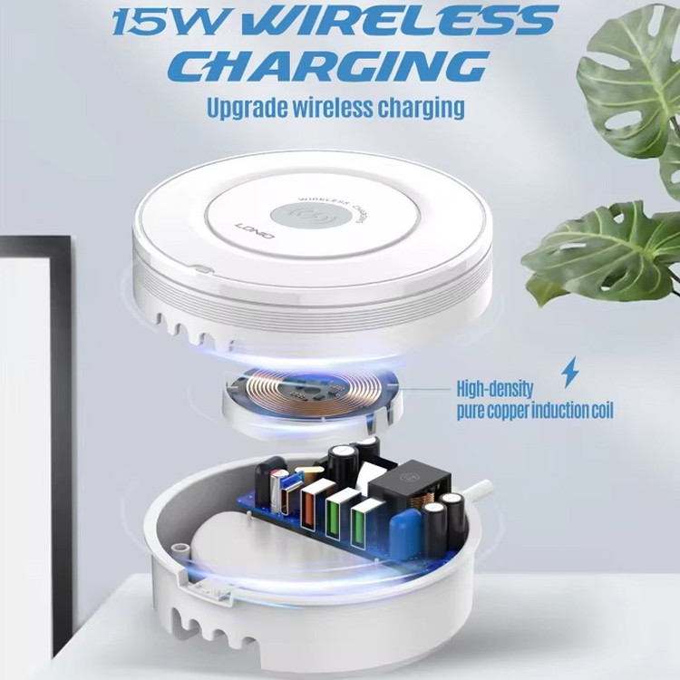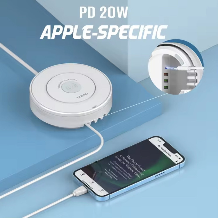کمپانی الدینیو از تولیدکنندگان در حوزه لوازم برقی است و با استفاده از جدیدترین تکنولوژی های روز اقدام به تولید محصولات متنوع می کند. که از محصولات کاربردی آن که به تازگی وارد بازار شده است می توان به شارژر رومیزی بی سیم الدینیو مدل AW003 اشاره کرد. این محصول علاوه بر پد وایرلس شارژ، 4 پورت مختلف USB برای شارژ به صورت سیمی نیز دارد. با استفاده از این محصول قادر خواهید بود بدون هیچگونه نگرانی 5 دستگاه اعم از تمامی گوشیهای موبایل، تبلت، پخشکنندههای موسیقی قابلحمل، دستگاههای GPS و ... را همزمان شارژ کنید. در شارژر رومیزی بی سیم الدینیو مدل AW003 علاوه بر پد شارژ وایرلس، 1 پورت USB-C و 3 پورت USB-A با تکنولوژی شارژ مختلف قرار دارد. حداکثر خروجی برای پورت USB-C با پشتیبانی PD برابر 20W است. یکی از پورت های USB-A با پشتیبانی از پروتکل QC دارای حداکثر توان 18w و دو تای دیگر با تکنولوژی AutoID دارای حداکثر توان 12W می باشد. توان خروجی کلی این دستگاه 32 وات می باشد. حداکثر توان خروجی وایرلس شارژر الدینیو AW003 برابر 15W است و بین 15/10/7.5/5W متغیر است. در نظر داشته باشید میزان توان خروجی با توجه به تکنولوژی شارژ دستگاه شما تنظیم می شود. همچنین از تکنولوژی Qi پشتیبانی می کند و شما می توانید ایرپاد را نیز با آن به صورت بی سیم شارژ کنید. در ضمن در پک این محصول یک عدد کابل 1.5 متری جهت اتصال به برق نیز قرار دارد.