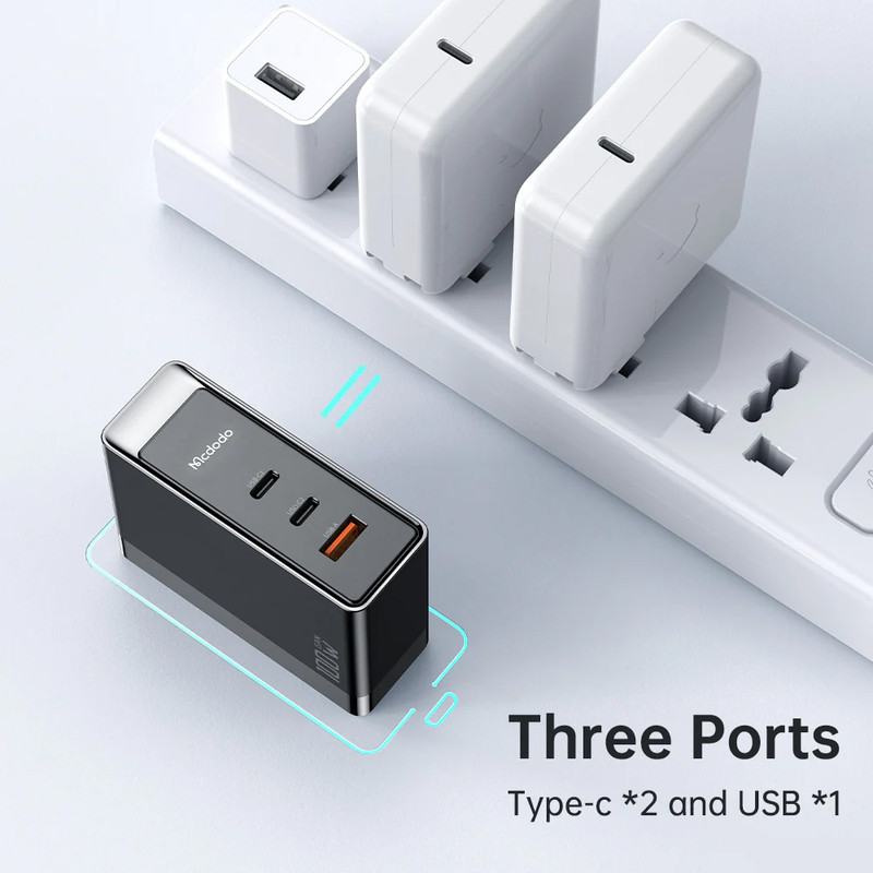 شارژر دیواری 100 وات مک دودو مدل GaN 100W 3-Port بهمراه تبدیل برق
