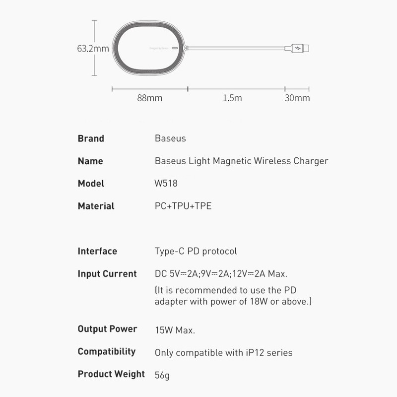 شارژر بی سیم باسئوس مدل W518 MagSafe