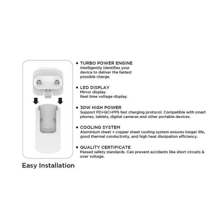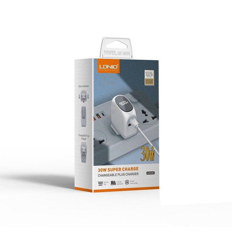 امروزه برند LDNIO به عنوان یک توزیع کننده با سابقه در جهان شناخته می شود که تولیدات آن شامل طیف گسترده ای از لوازم جانبی موبایل می باشد. در واقع برند الدینیو به طور تخصصی در زمینه ساخت وسایل جانبی گوشی مانند شارژر، کابل شارژ، پاور بانک و … فعالیت می کند و از بزرگترین صادرکنندگان این محصولات به شمار می آید. شارژر الدینیو مدل Super charger به همراه کابل تبدیل USB-C یک محصول با کیفیت است که به تازگی عرضه شده است. این شارژر دارای یک پورت USB با قابلیت شارژ سریع و یک پورت USB-C با قابلیت شارژ PD می باشد. توان شارژ آن برای خروجی Type-C حداکثر 30 وات و برای خروجی USB نیز حداکثر 30 وات می باشد. در نظر داشته باشید هنگام استفاده از دو پورت به صورت همزمان توان کلی بین دو پورت تقسیم می شود. این محصول از ایمنی بالایی برخودار می باشد، زیرا از 9 لایه محافظتی ساخته شده است که در برابر دما، توان، جریان شارژ به خوبی از تلفن همراهتان محافظت می کند. شارژر الدینیو مدل Super charger به همراه کابل تبدیل USB-C از ماده پلاستیک نسوز ساخته شده که باعث می شود در برابر دمای بالا مقاوم باشد. همچنین برای محصول یک نمایشگر قرار داده شده تا هنگام شارژ از میزان ولتاژ خروجی و شدت جریان دستگاه مطلع شوید. لازم به ذکر است در بسته بندی این محصول علاوه بر شارژر یک عدد کابل USB به Type-C به طول 100 سانتی متر قرار داده شده است.