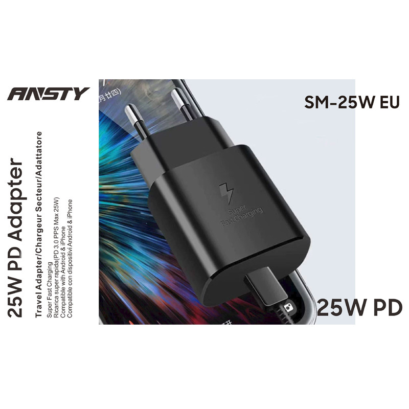 شارژر دیواری 25 وات سامسونگ مدل SM25 نه تنها سریعترین دستگاههای سامسونگ را به سرعت شارژدهی میکند، بلکه با مدلهای دیگر هم سازگاری خوبی دارد. شارژها از مهم ترین عوامل طولانیتر شدن عمر گوشی و باتری هستند، به طوری که اگر از شارژر مناسب و مرغوب برای گوشی خود استفاده نکنید میتواند آسیبهای جدی به گوشی شما وارد کند. اگر به دنبال یک شارژر دیواری قدرتمند و سریع برای شارژ کردن دستگاهتان میگردید، ما به شما خرید شارژر 25 واتی انستی را پیشنهاد میدهیم. برای دستگاههای سازگار با استاندارد PD 3.0 حداکثر شارژ 25 وات دریافت خواهید کرد، در حالی که دیگر دستگاهها با سرعتی که میتوانند اداره کنند شارژ میشوند. درگاه ارتباطی آن از نوع USB Type-C است. لازم به ذکر است این محصول بدون کابل است و باید به صورت جداگانه کابل مناسب را تهیه کنید.