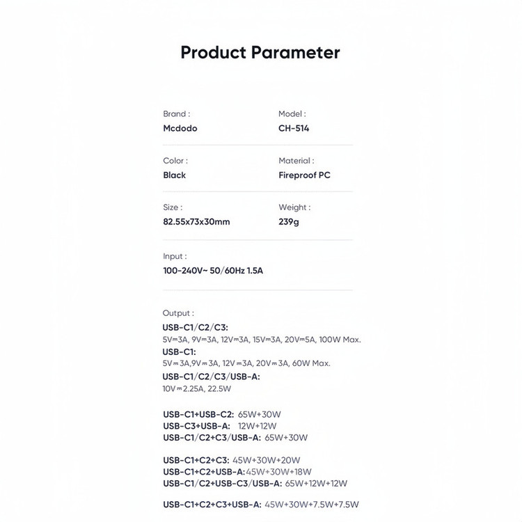 شارژر دیواری 100 وات مک دودو مدل CH-514