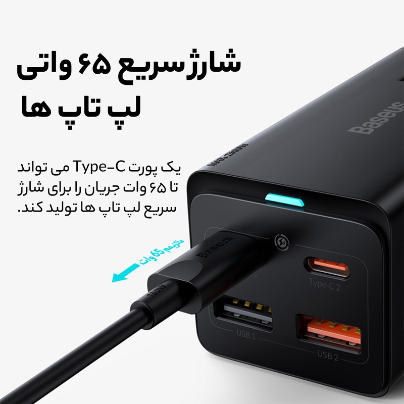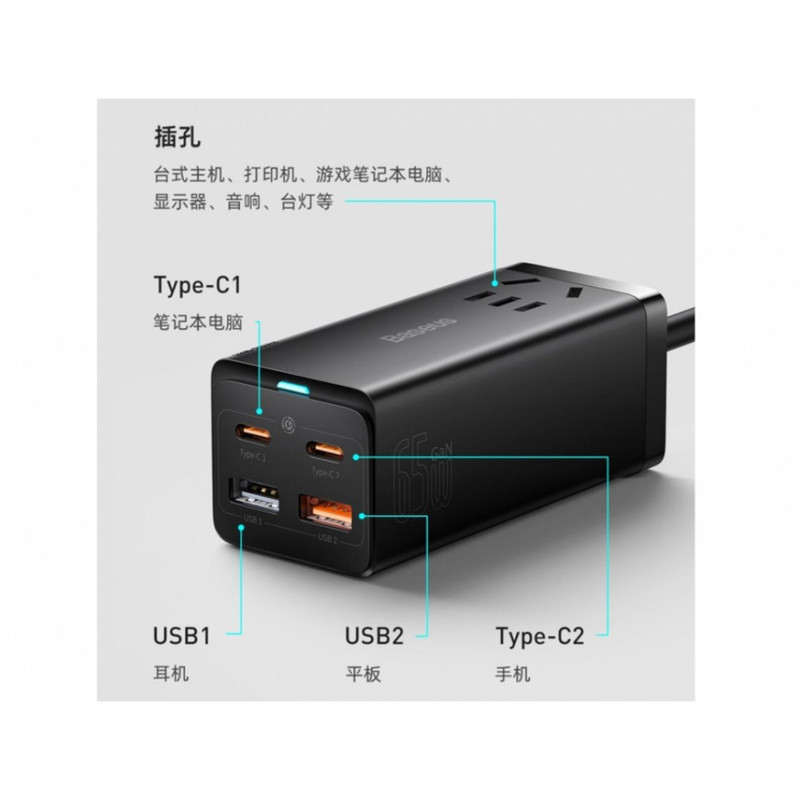 شارژر رومیزی 65 وات بیسوس مدل Powerstrip 65W به همراه کابل تبدیل USB-C