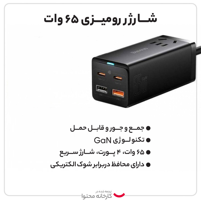 شارژر رومیزی 65 وات بیسوس مدل Powerstrip 65W به همراه کابل تبدیل USB-C