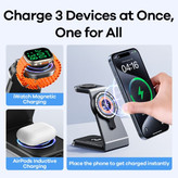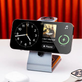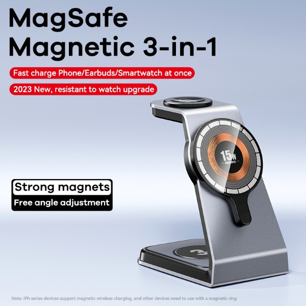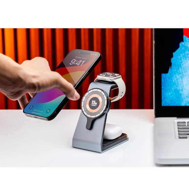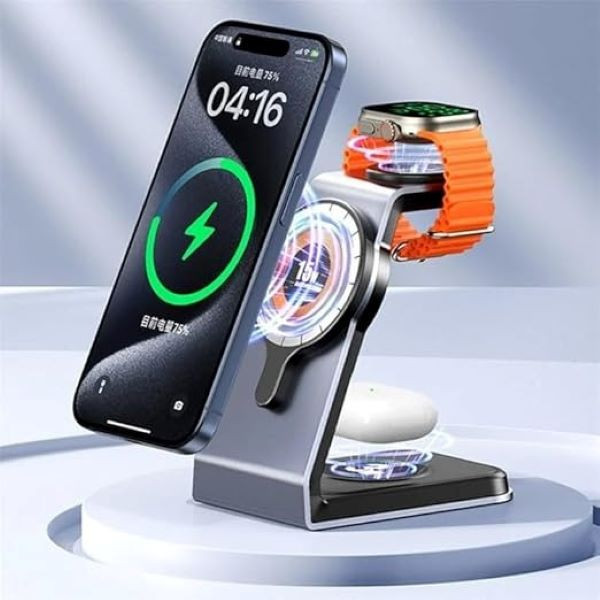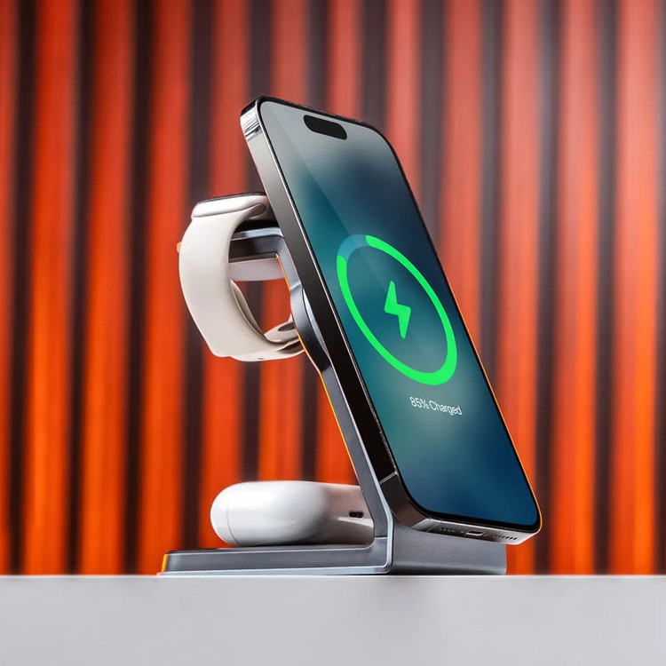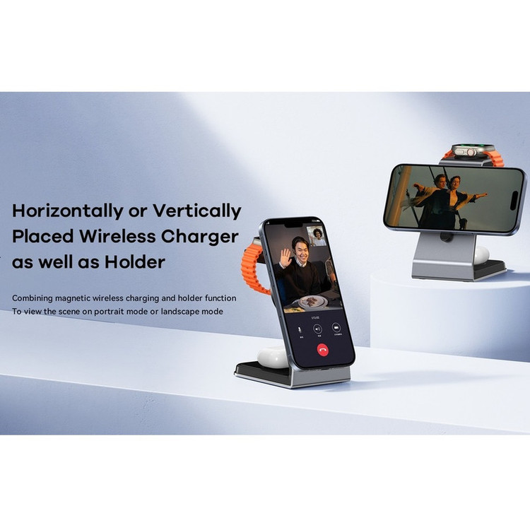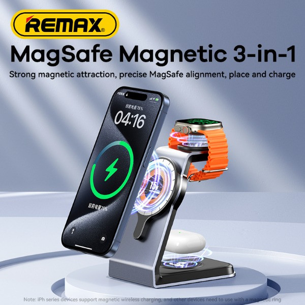 شارژر بی سیم ریمکس مدل RP-W85 یک دستگاه بسیار کارآمد و نوآورانه است که به شما امکان می دهد تلفن همراه یا دستگاه های دیگر را بدون نیاز به کابل شارژ کنید. این شارژر با استفاده از تکنولوژی Qi شارژ بی سیم را بسیار ساده و راحت می کند. کافیست دستگاه خود را بر روی سطح شارژ قرار دهید و فرآیند شارژ به طور خودکار آغاز می شود.این محصول یک راه حل شارژ شیک و کارآمد برای آیفون، اپل واچ و ایرپاد شما است(و دستگاه هایی با قابلیت شارژ وایرلس) حداکثر خروجی 20.5 وات این شارژر بی سیم امکان ارائه شارژ سریع برای گوشی موبایل (15 وات)، ساعت (2.5 وات) و ایرپاد (3 وات)را فراهم میکند و همچنین فناوری مغناطیسی که دستگاه های شما را ایمن در جای خود نگه می دارد و همچنین میتوانید از انعطاف پذیری با شارژ چند جهته لذت ببرید.آیا میخواهید برنامه مورد علاقه ی خود را ببینید یا تماسهای ویدیویی بگیرید؟ نمای قابل تنظیم امکان جابجایی بدون محدودیت بین جهت افقی و عمودی را برای شما فراهم می کند. با شارژر بی سیم Remax RP-W85 روال شارژ خود را متحول کنید. این شارژر با خروجی قدرتمند 20.5 وات، به طور هدفمند ساخته شده است تا شارژ آیفون، اپل واچ و ایرپاد شما را به سرعت و به طور همزمان تامین کند.ویژگی کشش مغناطیسی قوی برای گیرکردن خودکار دستگاه شما را در جای خود قفل می کند، بنابراین همیشه از شارژ ثابت و کارآمد بدون هیچ زحمتی برای تنظیم مجدد مطمئن هستید. جهت افقی و عمودی این شارژر برای سبک زندگی مدرن طراحی شده است.با استفاده از شارژر بی سیم RP-W85 می توانید همزمان چندین دستگاه را شارژ کنید. این قابلیت خیلی مفید است، به ویژه در مواقعی که نیاز به شارژ چندین دستگاه همزمان دارید. Remax RP-W85 چیزی بیش از یک شارژر است.طراحی براق آن دارای یک روکش فلزی لوکس است که زیبایی خاصی را به نمایش می گذارد.