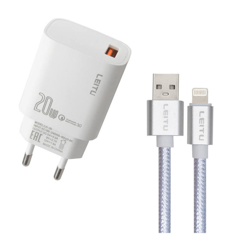 شارژر دیواری لیتو مدل LH-25 20W به همراه کابل تبدیل لایتنینگ