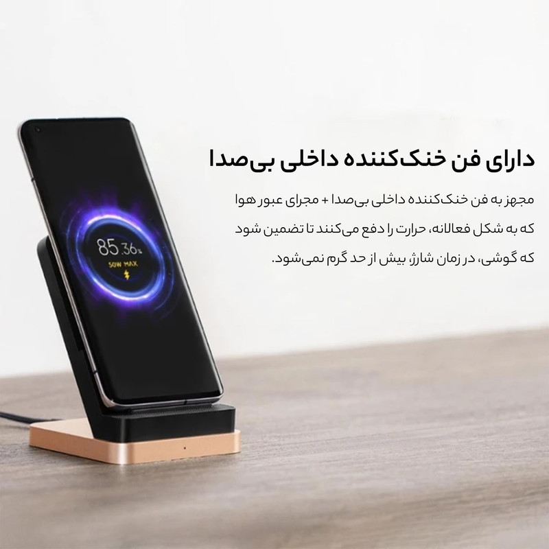 دغدغه شارژ کردن لوازم دیجیتال، تولیدکنندگان این محصولات را به قلههای جذابی از نوآوری رسانده است. در حال حاضر، شارژرهای وایرلس جدیدترین تکنولوژیهای شارژ هستند که اگر مورد پذیرش گجت شما باشند، میتوانید بدون نیاز به ارتباطی سیمی، گجت خود را شارژ کنید. این جایگزین کاربردی که جانشین شارژرهای USB هستند، در انواع اقسام مختلف وجود دارند به طوری که کلکسیون نسبتا کامل از آن، بین محصولات شیائومی دیده میشود. از جمله شارژر وایرلس 55W شیائومی MDY-12-EN که به طور همزمان نقش هولدر، شارژر و فن را ایفا میکند. ظاهر شارژر وایرلس 55W شیائومی MDY-12-EN، ظاهر رایج اغلب شارژرهای وایرلس است. یک صفحه عمودی برای قرار گرفتن گوشی موبایل دارد که روی پایه طلایی، نمای مدرن و جذابی را ترتیب داده است. همانطور که انتظار داشتیم، از مواد اولیه نسوز به عنوان متریال ساخت شارژر وایرلس 55W شیائومی MDY-12-EN استفاده شده که به طور همزمان، وزن بسیار کمی دارد. این روزها که جلسات و کلاسهای آموزشی به صورت آنلاین برگزار میشوند، به راحتی میتوانید از این شارژر به عنوان هولدر موبایل استفاده کنید. با توجه به ظاهر مدرن و شیکی که دارد، به عنوان یک اکسسوری زیبا روی میز کار یا میز مطالعه شما قرار میگیرد و نیاز شما به هولدر، شارژر و فن خنک کننده را به طور همزمان مرتفع میکند.