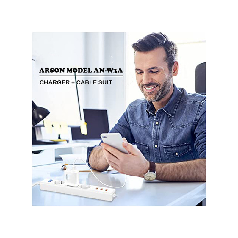 شارژر دیواری آرسون مدل AN-W3A به همراه کابل تبدیل usb-c