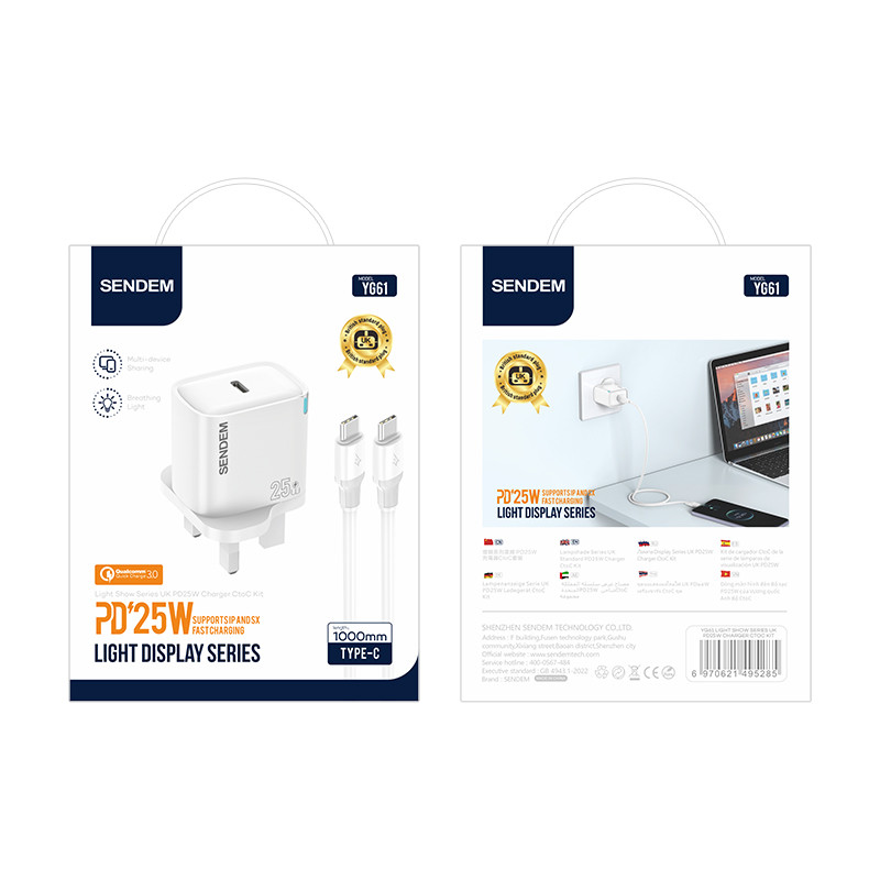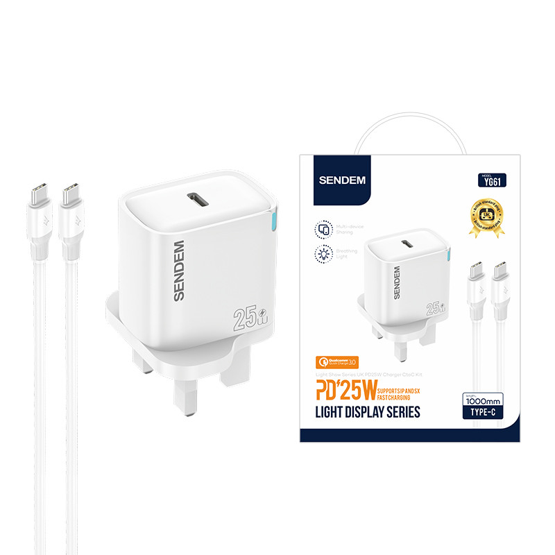 شارژر دیواری 25 وات سندم مدل YG61 به همراه کابل تبدیل USB-C