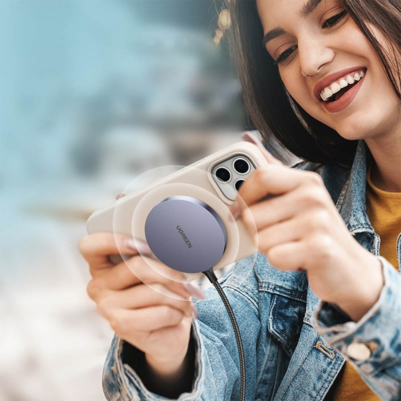 شارژر بیسیم MagSafe برای آیفون: با گواهینامهی Qi، این شارژر بیسیم مغناطیسی MagSafe پشتیبانی از شارژ سریع 7.5 وات برای آیفون 14/14 Pro/14 Pro Max/13 Pro Max/13 Pro/13/12 Pro Max/12 Pro/12/Mini 12 و غیره و 5 وات شارژ سریع برای AirPods/AirPods Pro و غیره را دارد. فقط دستگاه خود را روی پد شارژ قرار دهید، شارژر بیسیم با سرعتی 3 برابر سریعتر از شارژرهای بیسیم سنتی شارژ میشود. راحتی در شارژ: فقط دستگاه مجهز به Qi با مغناطیس را در مرکز پد شارژ بیسیم قرار دهید، و تلفن شما فوراً به صورت مغناطیسی جذب و شارژ میشود. این برای شما راحتتر است تا با تلفن خود بازی کنید و آن را شارژ کنید. شارژ امنتر: با یک سیستم چندگانه محافظت، این شارژر بیسیم MagSafe آیفون به شما و دستگاههایتان محافظت از شارژ بیشازحد، تشخیص بیگانه، کنترل دما و محافظت از مدار کوتاه را فراهم میکند. شارژر بیسیم مغناطیسی MagSafe: سیم شارژ قوی مغناطیسی میتواند شما را در شارژ آیفون با یک قاب تلفن مغناطیسی نگه دارد. شیک و نازک: با طراحی 6.2 میلیمتر ضخامت و وزن 62 گرم، این شارژر بیسیم MagSafe از UGREEN مناسب برای تقریباً تمام کیفهاست، برای شما راحتتر است تا آن را هر جا ببرید. ساخته شده از آلومینیوم، پوسته بهتر حرارت را پخش میکند، تجربه شارژ پایدارتری برای شما فراهم میکند. کابل USB C 1.5 متری داخلی که به شما امکان میدهد با یک شارژر PD، دستگاه را سریعتر شارژ کنید.