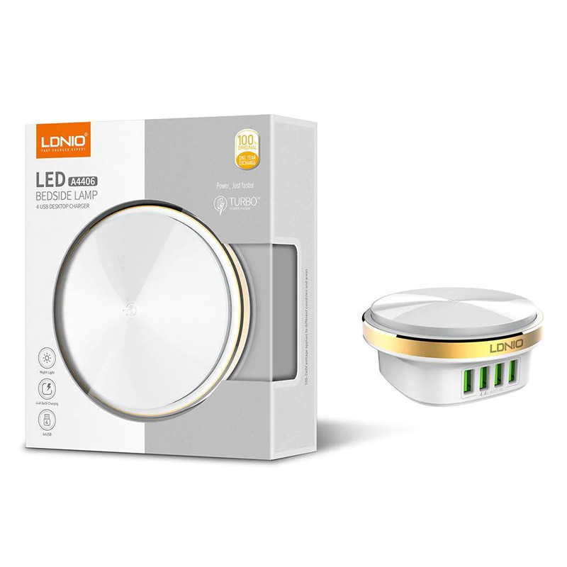 کمپانی الدینیو از تولیدکنندگان در حوزه لوازم برقی است و با استفاده از جدیدترین تکنولوژی های روز اقدام به تولید محصولات متنوع می کند. که از محصولات کاربردی آن که به تازگی وارد بازار شده است می توان به هاب A4406 اشاره کرد. در واقع این محصول هم یک هاب شارژر و هم یک چراغ خواب رومیزی است. بدنه ی هاب الدینیو مدل Bedside Lamp از مواد اولیه مرغوب بوده و از مقاومت بالایی برخوردار است. در قسمت کناری آن یک نوار فلزی دوربری شده با تکنولوژی CNC وجود دارد که در زیر آن لامپ LED با میزان نوردهی خوب قرار گرفته است که به خوبی کار یک چراغ خواب را نیز برایتان انجام می دهد. شما می توانید نور این لامپ را کم و زیاد و بسته به مقدار مورد نظرتان تنظیم کنید( دارای سه حالت نوردهی ). هاب الدینیو مدل Bedside Lamp همینطور دارای 4 پورت USB جهت شارژردهی می باشد. این پورت های USB دارای تکنولوژی Auto-ID هستند و شدت جریان خروجی را بسته به دستگاه متصل به آن به خوبی تنظیم و کنترل می کنند. این ویژگی سبب افزایش عمر باتری دستگاه متصل نیز می شود. توان خروجی این سه پورت 4.4 آمپر و 5 ولت بوده و لامپ های LED نیز دارای حداکثر توان 2.4 وات می باشند. البته تعداد لامپ های LED به کار رفته 12 عدد است. درجه حرارت لامپ این چراغ خواب 6500K می باشد. با استفاده از هاب Bedside Lamp قادر خواهید بود بدون هیچگونه نگرانی 4 دستگاه اعم از تمامی گوشیهای موبایل، تبلت، پخشکنندههای موسیقی قابلحمل، دستگاههای GPS و ... را همزمان شارژ کنید. لازم به ذکر است که در بخش پایینی این محصول چهار قطعه سیلیکونی که وظیفه ی پایه را بر عهده دارند و مانع از لغزش این محصول از روی سطوح صاف و مسطح می شوند. در ضمن در پک این محصول یک عدد کابل 1.5 متری جهت اتصال به برق نیز قرار دارد.