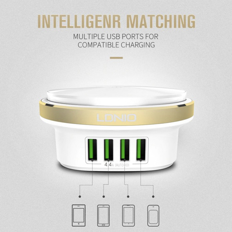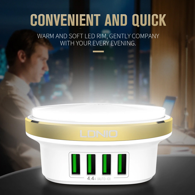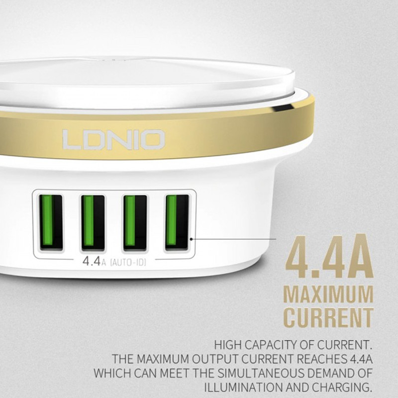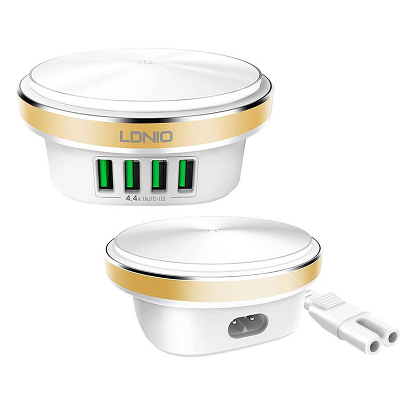 کمپانی الدینیو از تولیدکنندگان در حوزه لوازم برقی است و با استفاده از جدیدترین تکنولوژی های روز اقدام به تولید محصولات متنوع می کند. که از محصولات کاربردی آن که به تازگی وارد بازار شده است می توان به هاب A4406 اشاره کرد. در واقع این محصول هم یک هاب شارژر و هم یک چراغ خواب رومیزی است. بدنه ی هاب الدینیو مدل Bedside Lamp از مواد اولیه مرغوب بوده و از مقاومت بالایی برخوردار است. در قسمت کناری آن یک نوار فلزی دوربری شده با تکنولوژی CNC وجود دارد که در زیر آن لامپ LED با میزان نوردهی خوب قرار گرفته است که به خوبی کار یک چراغ خواب را نیز برایتان انجام می دهد. شما می توانید نور این لامپ را کم و زیاد و بسته به مقدار مورد نظرتان تنظیم کنید( دارای سه حالت نوردهی ). هاب الدینیو مدل Bedside Lamp همینطور دارای 4 پورت USB جهت شارژردهی می باشد. این پورت های USB دارای تکنولوژی Auto-ID هستند و شدت جریان خروجی را بسته به دستگاه متصل به آن به خوبی تنظیم و کنترل می کنند. این ویژگی سبب افزایش عمر باتری دستگاه متصل نیز می شود. توان خروجی این سه پورت 4.4 آمپر و 5 ولت بوده و لامپ های LED نیز دارای حداکثر توان 2.4 وات می باشند. البته تعداد لامپ های LED به کار رفته 12 عدد است. درجه حرارت لامپ این چراغ خواب 6500K می باشد. با استفاده از هاب Bedside Lamp قادر خواهید بود بدون هیچگونه نگرانی 4 دستگاه اعم از تمامی گوشیهای موبایل، تبلت، پخشکنندههای موسیقی قابلحمل، دستگاههای GPS و ... را همزمان شارژ کنید. لازم به ذکر است که در بخش پایینی این محصول چهار قطعه سیلیکونی که وظیفه ی پایه را بر عهده دارند و مانع از لغزش این محصول از روی سطوح صاف و مسطح می شوند. در ضمن در پک این محصول یک عدد کابل 1.5 متری جهت اتصال به برق نیز قرار دارد.