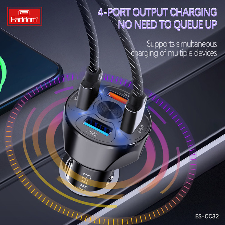 شارژر فندکی 18 وات ارلدام مدل 4USB CAR CHARGER