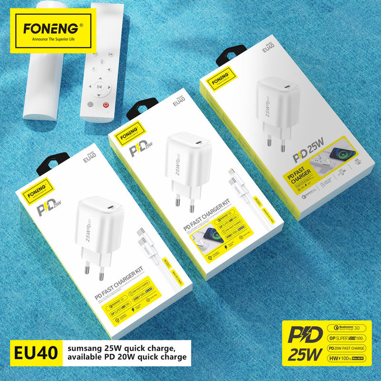 شارژر 25 وات U25 فست شارژ فوننگ جدید ترین با کیفیت ترین محصول شرکت معتبر فوننگ میباشد. که در زمینه تولید لوازم جانبی موبایل بسیار موفق بوده و محصولاتی باکیفت بالا تولید میکند . این شارژر به همراه کابل تایپ سی میباشد و مناسب برای تمامی گجت ها از جمله انواع تلفن های همراه و تبلت میباشد. جنس بدنه شارژر از پلاستیک نسوز بسیار با کیفیت میباشد