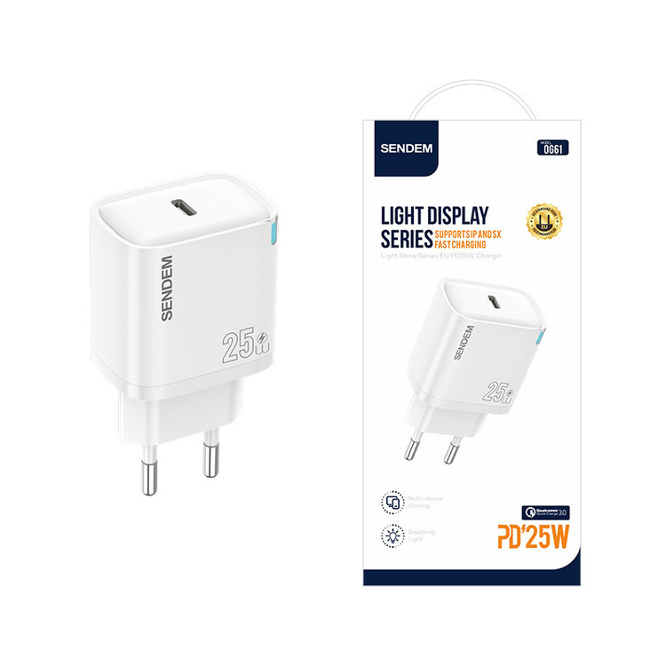 شارژر دیواری 25 وات سندم مدل A55 SUPERFAST نه تنها سریعترین دستگاههای سامسونگ را به سرعت شارژدهی میکند، بلکه با مدلهای دیگر هم سازگاری خوبی دارد. شارژها از مهم ترین عوامل طولانیتر شدن عمر گوشی و باتری هستند، به طوری که اگر از شارژر مناسب و مرغوب برای گوشی خود استفاده نکنید میتواند آسیبهای جدی به گوشی شما وارد کند. اگر به دنبال یک شارژر دیواری قدرتمند و سریع برای شارژ کردن دستگاهتان میگردید، ما به شما خرید شارژر 25 واتی سندم را پیشنهاد میدهیم. برای دستگاههای سازگار با استاندارد PD 3.0 حداکثر شارژ 25 وات دریافت خواهید کرد، لازم به ذکر است این محصول بدون کابل است و باید به صورت جداگانه کابل مناسب را تهیه کنید.