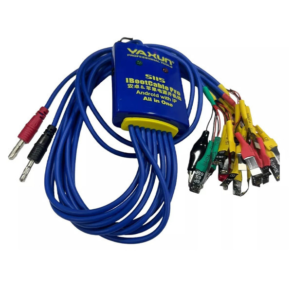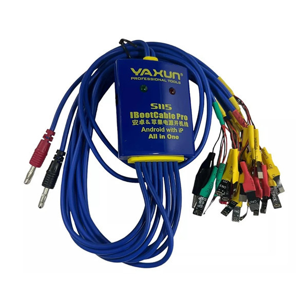 کابل پاور اندروید آیفون یاکسون مدل YX-S115 _ یک ابزار تعمیراتی جدید و کاربردی از برند یاکسون که برای تعمیر گوشی های اندرویدی و آیفون طراحی شده است. کابل پاور به شما این امکان را می دهد که با استفاده از یک منبع تغذیه جریان مورد نیاز برای روشن کردن برد گوشی موبایل را تامین کنید و اقدام به تعمیر آنها کنید. درواقع کار این دستگاه تامین ولتاژ وجریان مناسب برای روشن شدن گوشی بدون آسیب به برد گوشی است که در صورتی که دستگاه اتصال کوتاه شده باشد مانع جریان کشی زیاد شده و اگر ولتاژ ورودی دستگاه بیش از 4.7 ولت برسد به صورت خودکارجریان قطع مشود به طور موثر از بالا رفتن ولتاژ و سوختن تلفن همراه جلوگیری می کند. این کابل از سیم مسی با خلوص بالا استفاده می کند که می تواند جریان 3 آمپر را عبور دهد . استفاده از این کابل بسیار ساده است فقط کافی است که کابل های پراپ را به منبع تغذیه وصل کنید و سوکت متناسب با دستگاه را به برد گوشی وصل کنید با استفاده از دکمه پاور، گوشی را روشن و اقدام به تست جریان کشی و مسیر ولتاژ کنید. این کابل پاور یاکسون بیش از 2600 مدل گوشی اندرویدی و ios را پشتیبانی میکند.