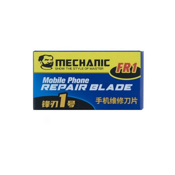 تیغ تعویض گلس و ال سی دی مکانیک مدل FR1 _ ابزاری ظریف ونازک از برند مکانیک که برای جداسازی گلس و ال سی دی شکسته شده از گوشی های هوشمند و سایر دستگاه های الکترونیکی استفاده می شود. این تیغه ها از جنس فولاد ضد زنگ و سرامیک ساخته شده اند و لبه های بسیار تیزی دارند که می توانند به دقت زیر گلس نفوذ کنند و بدون آسیب رساندن به اجزای داخلی گوشی آن را از قاب گوشی جدا کنند از دیگر کاربردهای مختلف این ابزار می توان برای جداسازی گلس، تمیز کردن OCA، جدا کردن ال سی دی، شابلون زدن و سایر کارهای ظریف تعمیراتی استفاده نمود.