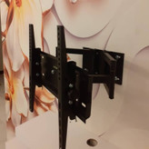 این پایه دیواری تلویزیون به براکت چرخشی، دوبازویی بزرگ یا متحرک در شش جهت (جلو و عقب، چپ و راست، رو به بالا و پایین تنظیم شو با زاویه شیب حدود 15 الی 25 درجه) معروف میباشد و برای تلویزیونهای 43 تا 65 اینچ طراحی شده است. در حال حاضر براکت های زیادی وجود دارند ولی این براکت از لحاظ استحکام (تهیه شده از ورق فولاد قوی)، ضریب ایمنی بالا و اطمینان در دیواری نمودن تلویزیون ارزشمند شما مورد تایید آسیا چوب میباشد. در ضمن کلیه وسایل مورد نیاز برای نصب روی دیوار در بسته بندی موجود میباشد. راهنمای نصب: ابتدا دو شاخک را به پشت تلویزیون متصل نموده و بعد از نصب دو فلکه مشکی مطابق عکس به شاخکها، تلویزیون را بر روی بازویی که به دیوار با مته شماره 8 پیچ و رولپلاک شده قرار میدهید. سپس دو پیچ پایین شاخکها را به سمت پشت برآمدگی سینی محکم نمایید.