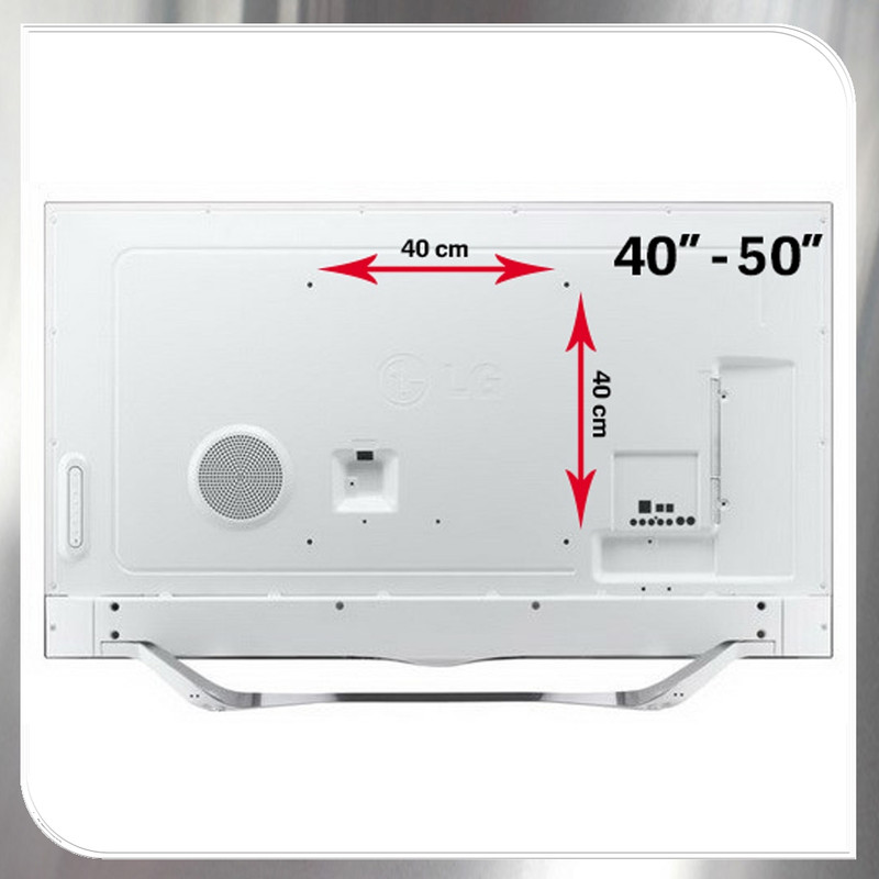 وزن 1850 گرم قابلیت تحرک و چرخش 15 درجه به دو جهت بالا و پایین جنس فولاد طول سینی 50 طول شاخک 42 پشتیبانی از تمامی تلویزیونهای 40 تا 60 اینچ که فاصله سوراخهای پشت آنها تا40×40 و 30×30 و 20×20 سانتیمتر باشد ابعاد بسته بندی 56×15×6 سانتیمتر