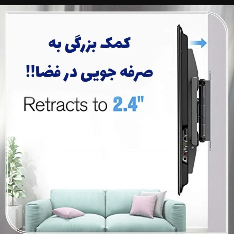 قابلیت جا به جایی به دو جهت بالا و پایین تا 15 درجه امکان پذیر است . جنس بدنه از آهن میباشد . طول سینی 50 سانتی متر و طول شاخک ها 44 سانتی متر میباشد . تلویزیون های 37 تا 60 اینچ و همچنین تلویزیون های منحنی را پشتییانی میکند .