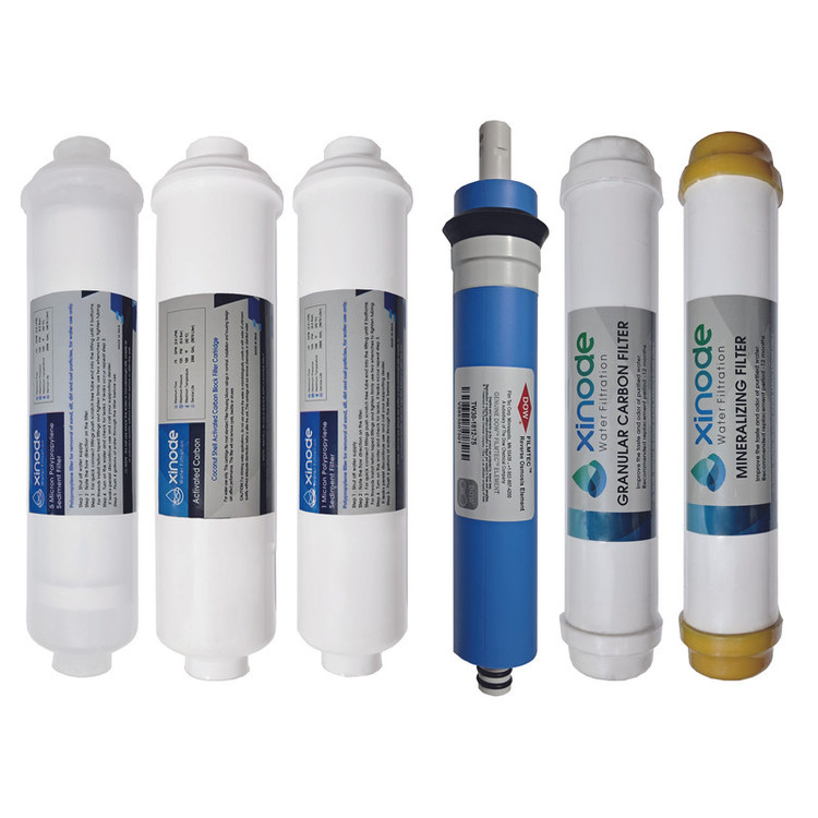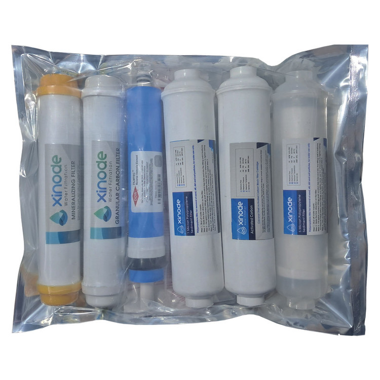 زینود برندی قدرتمند و با کیفیت در عرصه تولید محصولات تصفیه آب است. دستگاه های تصفیه آب کیسی زینود دارای سطح بهداشتی بالایی هستند که این موضوع حاصل از استفاده کردن از فیلترهای In-Line در این دستگاه ها است. فیلتر های In-Line زینود به دلیل پرس بودن بدنه فیلتر به خود فیلتر باعث میشود در زمان تعویض فیلترها، دست با فیلتر تماس نداشته و به این صورت آلودگی به فیلتر وارد نگردد. پک فیلتر 6 عددی زینود مدل RO-CXF106 مناسب برای دستگاه های تصفیه آب کیسی زینود بوده شامل فیلترهای پیش تصفیه، ممبران (تصفیه کننده اصلی(، فیلتر پست کربن و مینرال میباشد. فیلترهای پیش تصفیه شامل 3 مرحله زیر میباشد -فیلتر اول از نوع فیلتر الیافی 5 میکرون -فیلتر دوم از نوع فیلتر کربن پودری UDF ساخته شده از کربن 100 درصد گیاهی -فیلتر سوم از نوع فیلتر الیافی متراکم 1 میکرون و آب پس از عبور از این مراحل از ذرات درشت ، گل و لای و زنگار، کلر و ... پاک میگردد. مرحله چهارم فیلتر ممبران فیلتر ممبران فیلمتک از یک غشای نیمه تراوا با تکنولوژی بسیار پیشرفته ساخته شده است، فیلتر ممبران به عنوان قلب دستگاه تصفیه آب نقش اصلی را در روند تصفیه دارد. ممبران فیلمتک 75 گالن به طور اسمی توان تولید 280 لیتر آب تصفیه شده در شبانه روز را دارد.این فیلتر میتواند ذرات بزرگتر از 0.0001 میکرون را از آب جدا کند ، این ابعاد در مقیاس مولکولی است و ذراتی که ابعاد مولکول آنها بزرگتر از 0.0001 میکرون باشد مانند املاح مضر نیترات و نیتریت (که قطری معادل 6 ده هزارم میکرون دارند) توسط این فیلتر حذف می شوند. مرحله پنجم فیلتر پست کربن فیلتر پست کربن زینود یکی از محصولات با کیفیت این شرکت است که در مرحله 5 ام دستگاه تصفیه آب نصب میگردد و میتواند بو و مزه ناشی از ذخیره آب در مخزن را حذف نماید. کربن این فیلتر از مرغوب ترین نوع کربن گیاهی با درصد تخلخل بسیار بالا ساخته شده است. مرحله ششم فیلتر مینرال فیلتر مینرال زینود در مرحله 6 ام دستگاه ای تصفیه آب به روش اسمزمعکوس نصب میگردد و میتواند املاح مفید را به آب تصفیه شده برگرداند. در روش تصفیه آب به روش اسمز معکوس، تمامی املاح مفید و غیر مفید حذف میگردند و به همین علت فیلتر مینرال در آخر مرحله قبل از مصرف نصب میگردد تا املاح مفید را به آب اضافه کند.