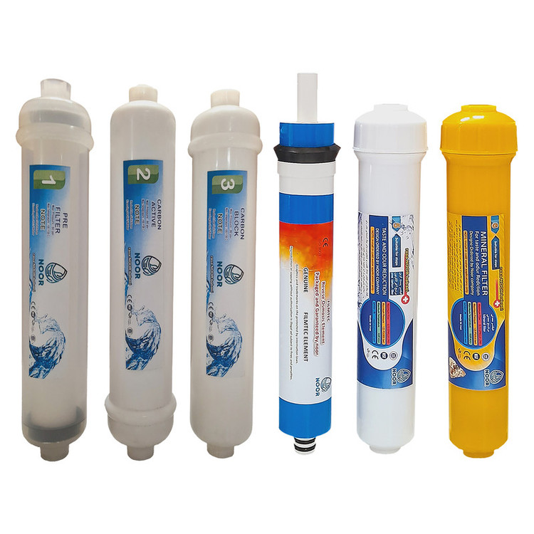 پک فیلتر خطی سری L600 و تمامی فیلترهای شرکت نور تماما از جنس پوست بادام و پسته بوده و دارای تاییدیههای بهداشتی از صنایع غذا و دارو میباشند. همچنین جنس بدنه فیلترها از نوع FOOD GRADE (گرید غذایی) بوده که این خود نشان از کیفیت بالای فیلترها میباشد. فیلترهای این شرکت به گونهای طراحی شدهاند که میتوانید محتویات داخل فیلترها را مشاهده و حتی آزمایش نمایید. این فیلترها در تمام دستگاههای تصفیه آب خانگی خطی (LINE , INLINE ) قابل استفاده میباشند. فیلترهای به کار رفته در این پک شامل: فیلتر الیافی P.P پنج میکرون جهت حذف شن ، ماسه ، زنگ آهن و....،فیلتر کربن اکتیو جهت حذف گازهای موجود در آب مانند کلر ، بنزن ، آمونیاک و... ، فیلتر P.P یک میکرون جهت حذف گازهای باقی مانده در آب و ذرات فعال از فیلتر مرحله دوم ، فیلتر ممبران با شیتهای FILM TEC جهت کاهش سختی آب و حذف انواع میکروب ها و باکتری ها سپس قرار گیری فیلتر پست کربن داخل پک زیرا آب بعد از تصفیه کامل در مخزن قرار می گیرد حال فیلتر پست کربن جهت حذف بو و مزه احتمالی آب استفاده می گردد و در نهایت فیلتر مینرال برای افزودن املاح معدنی به آب مانند سدیم پتاسیم منیزیم کلسیم که جهت طعم دهی به آب داخل پک تعبیه شده است .