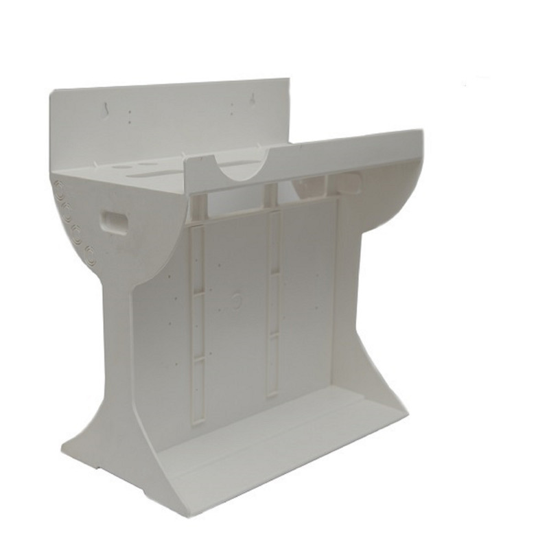 تمامی اجزای دستگاه تصفیه آب بروی قطعه ای سوار می شود که شاسی یا پایه نام دارد، البته در اصطلاح به آن استند نیز گفته می شود. این پایه از جنس فایبرگلاس و رنگ استاتیک می باشد و بصورت ایستاده طراحی گردیده و برتری آن نسبت به نمونه فلزی این است که زنگ نمیزند و هیچگاه نمیپوسد. شاسی فایبرگلاس دستگاه تصفیه آب کامپوزیتی از الیاف شیشه و مواد پلیمری ساخته شده که از پشم شیشه به عنوان تقویت کننده در آن استفاده شده است. مقاومت در برابر حرارت و انعطاف مناسب از مهمترین ویژگی های این شاسی می باشد. در گذشته نه چندان دور که استفاده از دستگاه های تصفیه آب جدی نشده بود، دستگاه های موجود در بازار اغلب فاقد شاسی بودند و در هنگام نصب بایستی با استفاده از 2 پیچ به دیواره کابینت متصل می شدند. اما با گسترش فرهنگ استفاده از دستگاه های تصفیه آب، به مرور زمان تغییراتی نیز در دستگاه ها ایجاد گردید که یکی از آن ها استفاده از یک شاسی محکم قابل حمل در طراحی دستگاه تصفیه آب بود که علاوه بر عدم نیاز به سوراخ کردن بدنه کابینت، حمل و جابجایی آن را نیز راحت تر می نماید