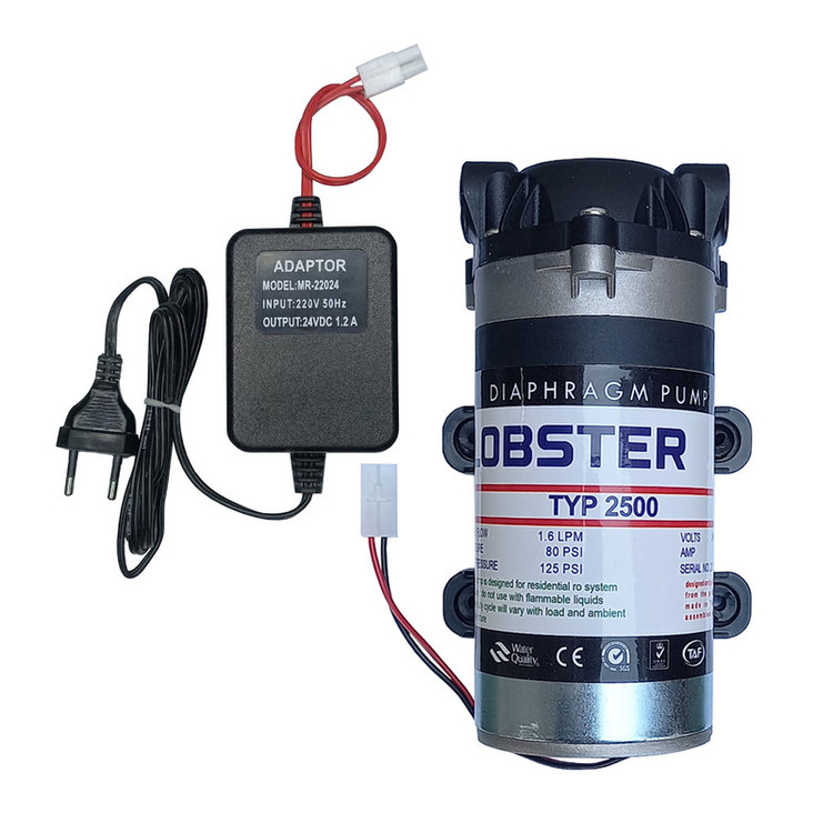 پمپ در دستگاه تصفیه آب اسمز معکوس (RO )وظیفه تامین فشار آب جهت مصرف فیلتر ممبران را دارد. حداقل فشار کاری ممبران دستگاه تصفیه آب خانگی 60PSI می باشد که پمپ وظیفه تامین این مقدار فشار را به عهده دارد .پمپ ها دارای 2 قسمت می باشند که یکی بدنه اصلی و سیم پیچ اصلی که در واقع یک موتور الکتریکی می باشد و دومی قسمت کلگی یا هد است که با اتصال کلگی به موتور ، درواقع موتور به پمپ تبدیل می شود . به پمپ های تصفیه آب خانگی پمپ های دیافراگمی یا بوستر پمپ نیز گفته می شود. برای دستگاه تصفیه آب خانگی ، پمپ های 24 ولت استفاده می شود . تمام پمپ های تصفیه آب خانگی مشابه به هم هستند و هرکدام از آنها را می توان بر روی هر برند دستگاه تصفیه آب نصب کرد. پمپ خوب باید کم صدا ، پرقدرت و پرفشار و کم لرزش باشد . ترانسی که به همراه پمپ تصفیه آب ارسال می شود 24 ولت و با آمپر 1.2 می باشد. اگر به دنبال پمپ های قدرتمند و پرفشار هستید یکی از پیشنهادات ما پمپ تصفیه آب لابستر مدل فایبر است که به برخی از ویژگی های آن می پردازیم : پمپ بدون صدا می باشد و کمترین دسی بل صدایی را تولید می کند . استفاده از سیم تمام مس و کلکتور مسی استفاده از بلبرینگ zz2, 2rs که در برابر رطوبت و نم زدگی بسیار مقاوم هستند و طول عمر بالایی دارند . هد پمپ قابل تعویض که از جنس پلاستیک فشرده است . این پمپ با دو عدد زانو و فیلم آموزش نصب ارسال می شود .