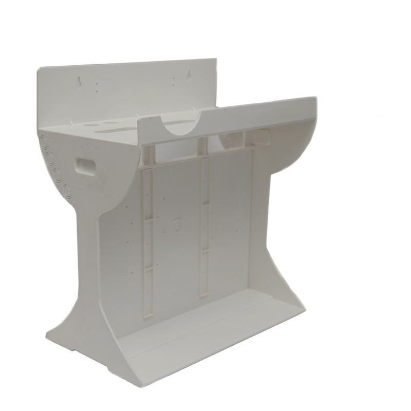 تمامی اجزای دستگاه تصفیه آب بروی قطعه ای سوار می شود که شاسی یا پایه نام دارد، البته در اصطلاح به آن استند نیز گفته می شود. این پایه از جنس فایبرگلاس و رنگ استاتیک می باشد و بصورت ایستاده طراحی گردیده و برتری آن نسبت به نمونه فلزی این است که زنگ نمیزند و هیچگاه نمیپوسد. شاسی فایبرگلاس دستگاه تصفیه آب کامپوزیتی از الیاف شیشه و مواد پلیمری ساخته شده که از پشم شیشه به عنوان تقویت کننده در آن استفاده شده است. مقاومت در برابر حرارت و انعطاف مناسب از مهمترین ویژگی های این شاسی می باشد. در گذشته نه چندان دور که استفاده از دستگاه های تصفیه آب جدی نشده بود، دستگاه های موجود در بازار اغلب فاقد شاسی بودند و در هنگام نصب بایستی با استفاده از 2 پیچ به دیواره کابینت متصل می شدند. اما با گسترش فرهنگ استفاده از دستگاه های تصفیه آب، به مرور زمان تغییراتی نیز در دستگاه ها ایجاد گردید که یکی از آن ها استفاده از یک شاسی محکم قابل حمل در طراحی دستگاه تصفیه آب بود که علاوه بر عدم نیاز به سوراخ کردن بدنه کابینت، حمل و جابجایی آن را نیز راحت تر می نماید