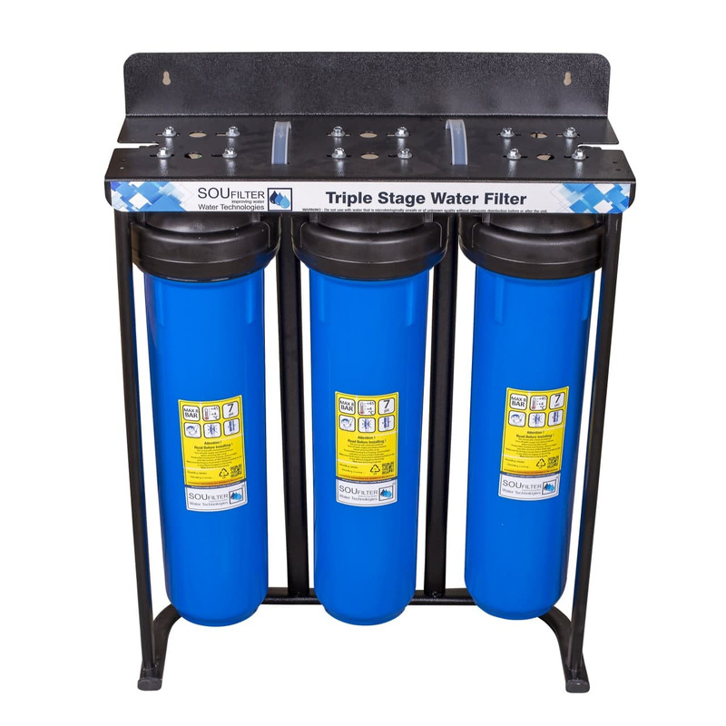 پیش تصفیه سه مرحله جامبو سوفیلتر به عنوان پیش تصفیه آب در مسیر لوله آب قرار می گیرد و با استفاده از فیلتر الیافی درون آن گل و لای، شن و ماسه و ذرات معلق را تا 5 میکرون تصفیه می کند. این محصول به عنوان پیش تصفیه آب ساختمان، ویلا، کارگاه و هر جایی که نیاز به تصفیه ذرات معلق آب ورودی باشد به کار میرود. ارتفاع فیلتر درون این محصول 20 اینچ و پورت ورودی و خروجی آن از جنس پلاستیک و 1 اینچ (لوله 3) می باشد .این پکیج شامل یک مجموعه پیش تصفیه 3 مرحله ، 2 عدد فیلتر الیافی و یک عدد فیلتر کربن میباشد
